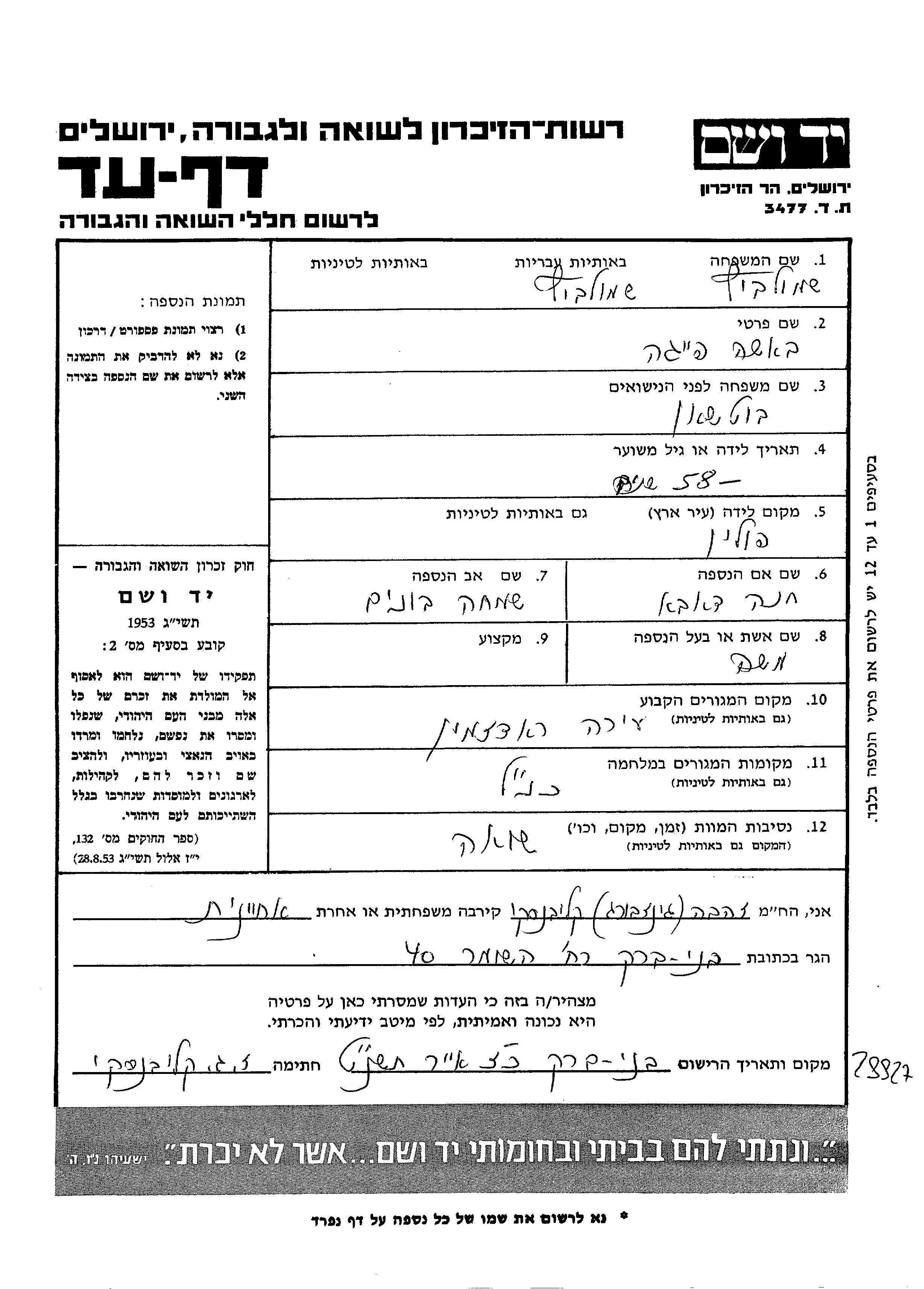 Shmulevitz Basha Feiga Radzymin, Polen Gedenkblatt