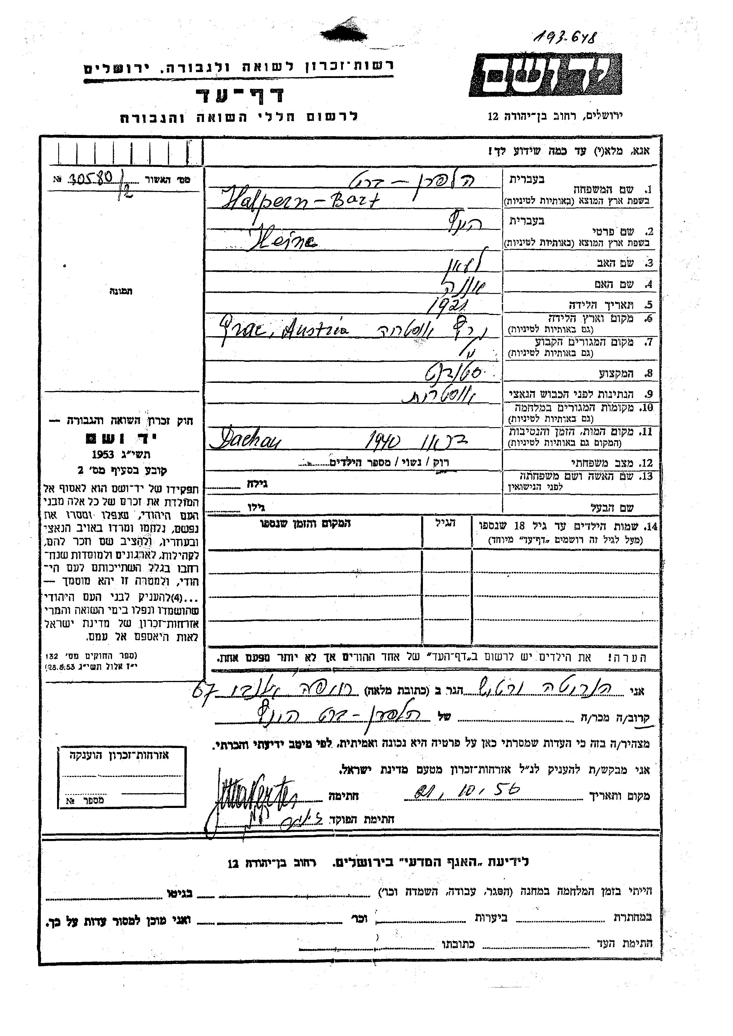 Heinc Halpern Bart wurde im Jahr 1921 in Graz, Österreich geboren. Er war der Sohn von Leon und Anna. Er war Student und Ledig. Vor dem Zweiten Weltkrieg lebte er in Graz, Österreich.