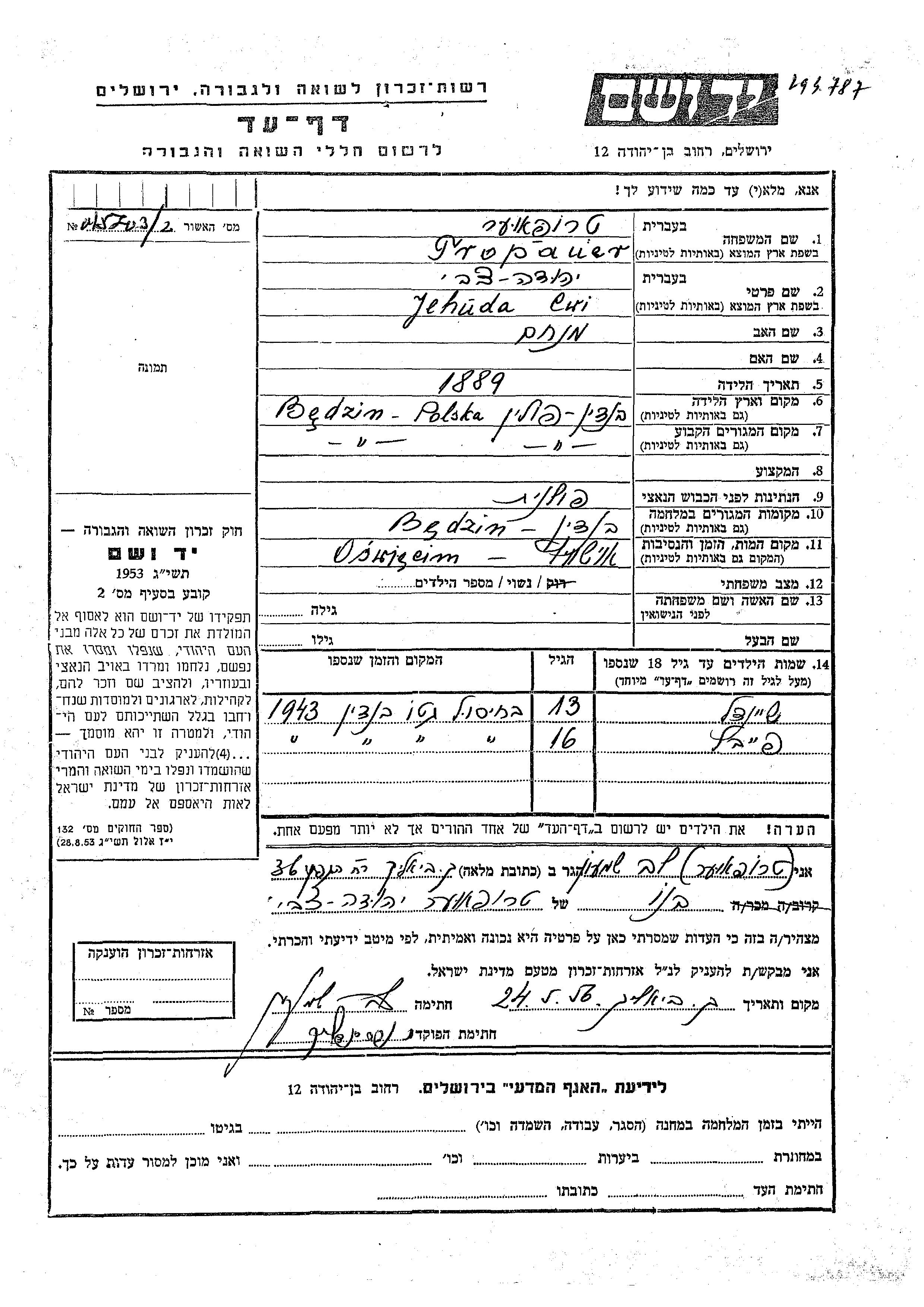 Suche nach einem Todesjahr im Zeitraum der Holocaust: 1933 bis 1945. Bitte wählen Sie 'Exakt' im Auswahlmenü, um nur nach einem einzelnen Jahr zu suchen, alternativ können Sie die flexibleren Optionen '+/- 2 Jahre' oder '+/- 5 Jahre' wählen.