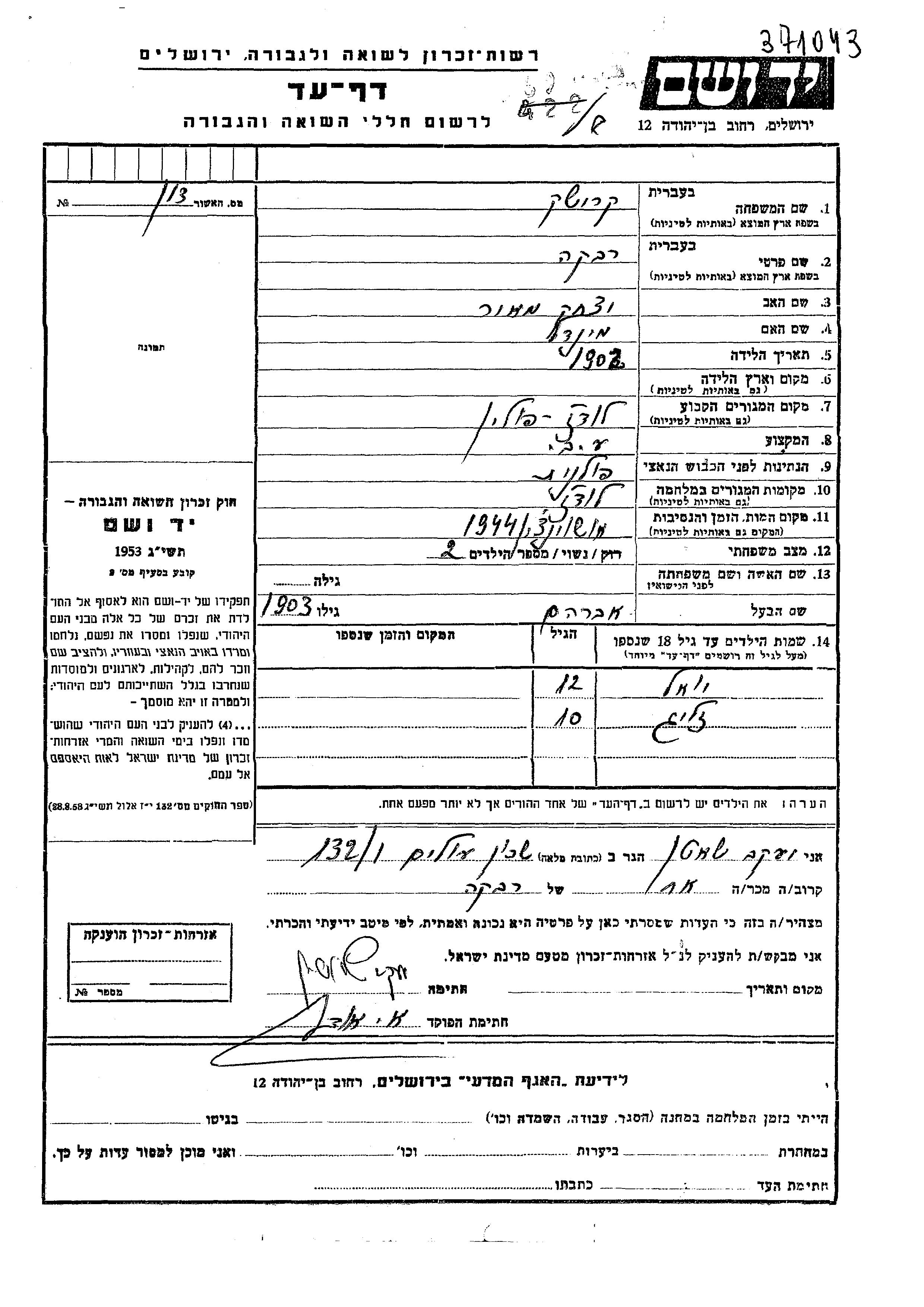 Zelig Krishek wurde Er war der Sohn von Avraham und Rivka. Er war Kind. Vor dem Zweiten Weltkrieg lebte er in Lodz, Polen. Während des Krieges war er in Lodz, Polen.
