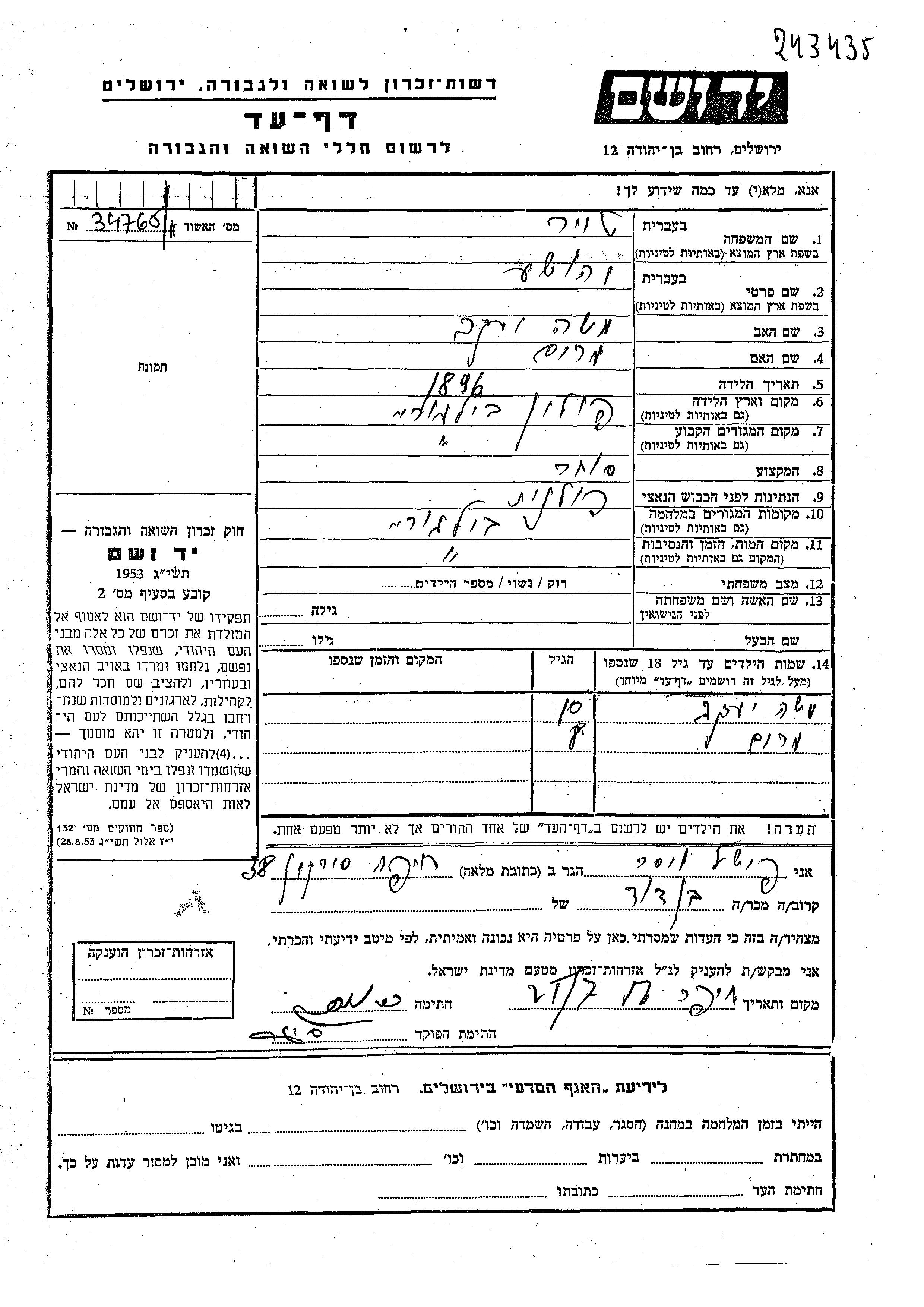 Teier Miriam unbekannter Ort, Gedenkblatt