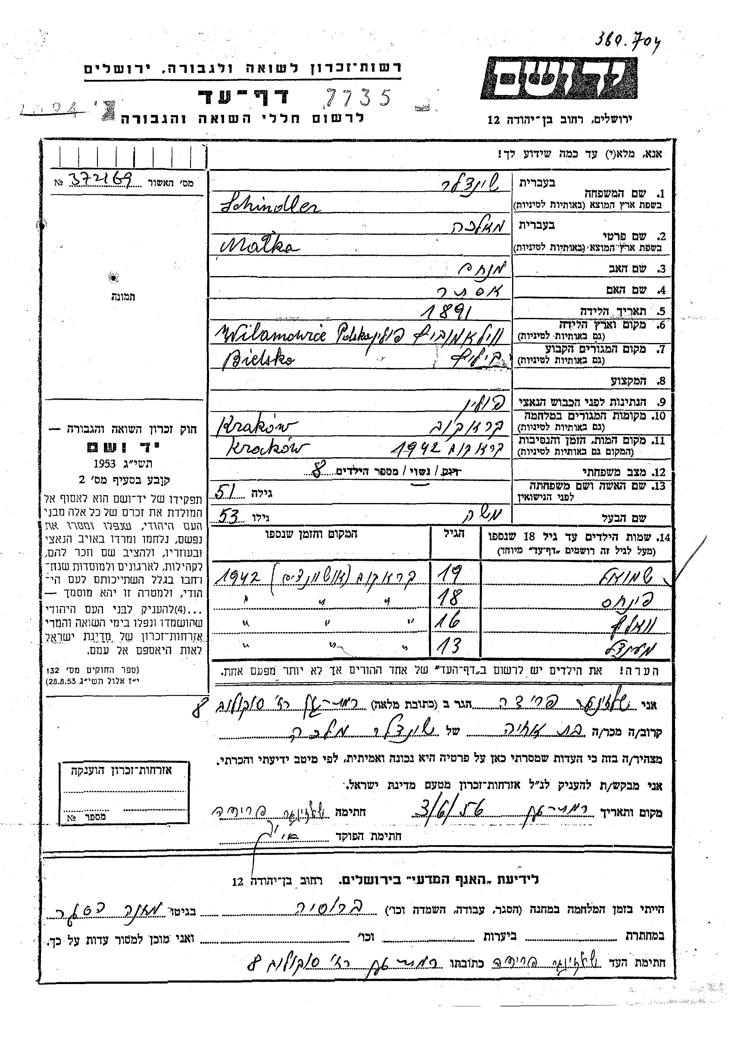 Mendl Schindler wurde Er war der Sohn von Moshe und Malka. Er war Kind. Vor dem Zweiten Weltkrieg lebte er in Bielsko, Polen. Während des Krieges war er in Krakow, Polen.