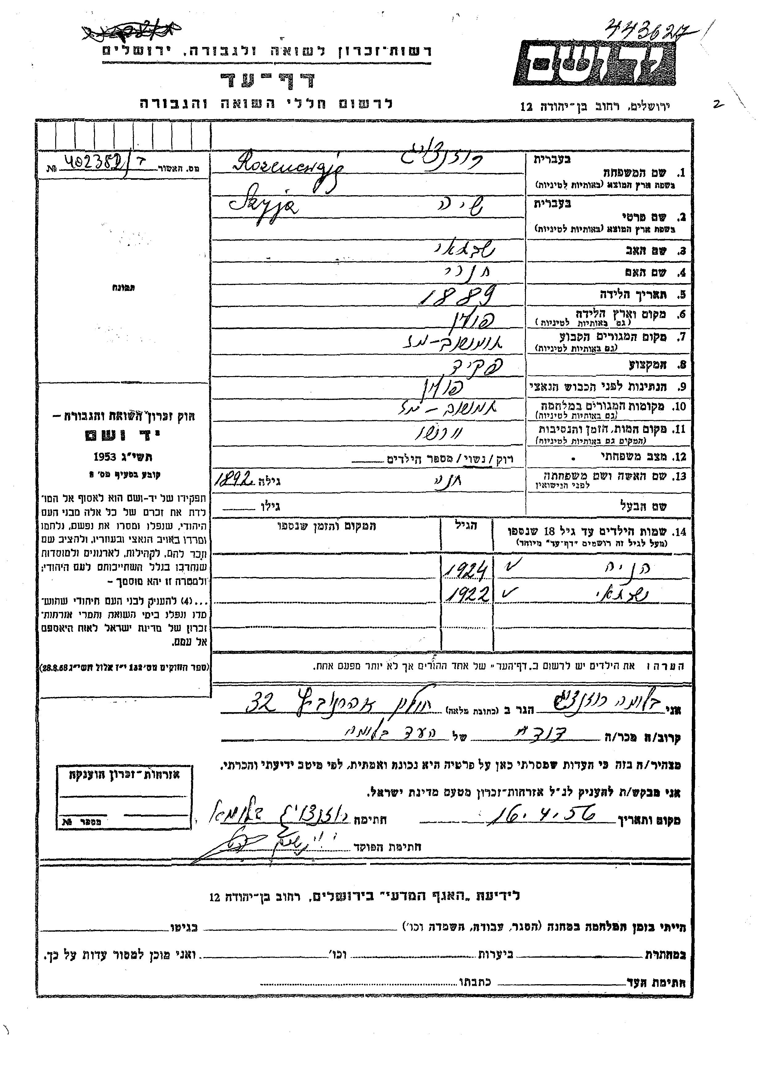 Suche nach einem Todesjahr im Zeitraum der Holocaust: 1933 bis 1945. Bitte wählen Sie 'Exakt' im Auswahlmenü, um nur nach einem einzelnen Jahr zu suchen, alternativ können Sie die flexibleren Optionen '+/- 2 Jahre' oder '+/- 5 Jahre' wählen.