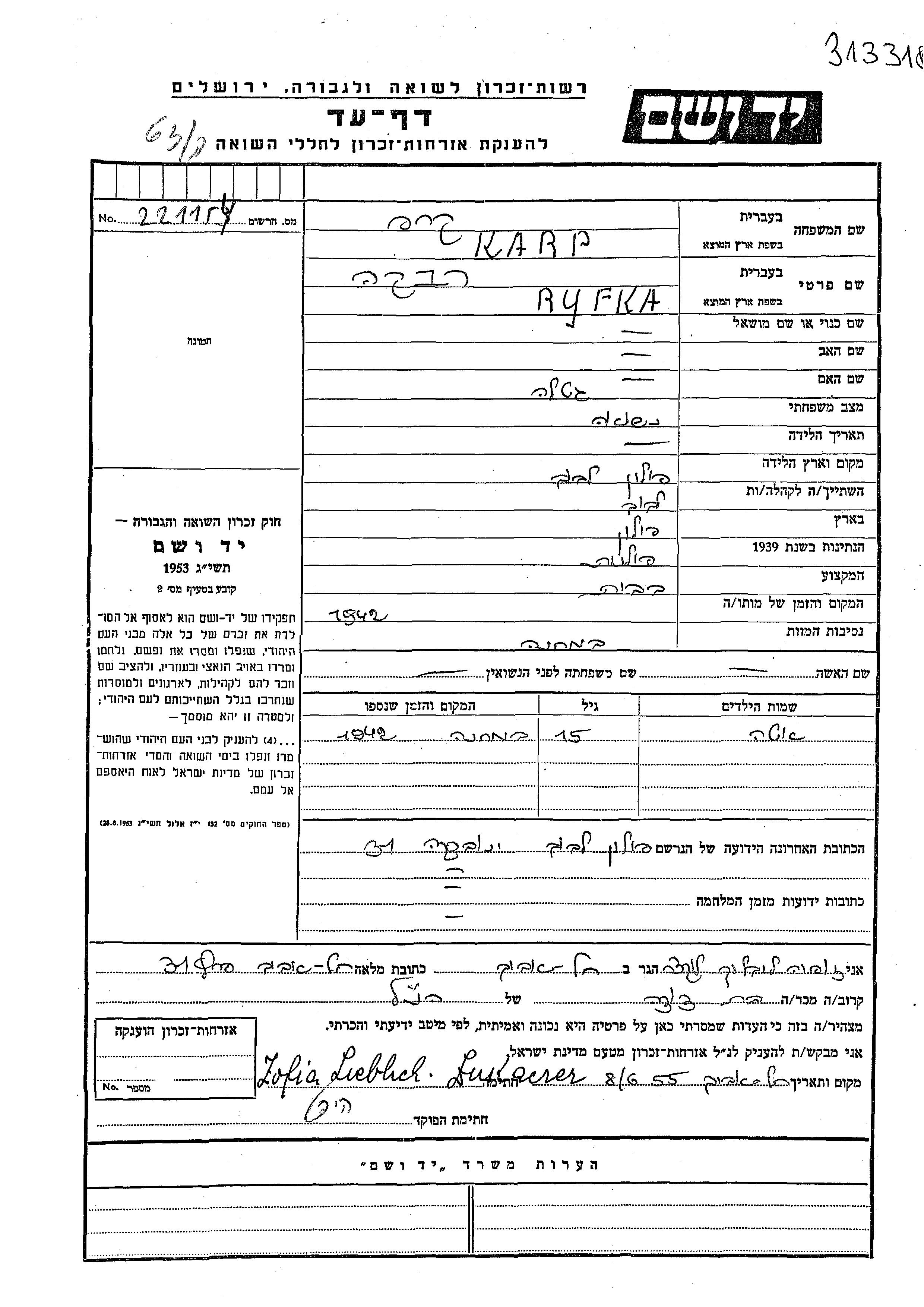 Eta Karp wurde Sie war die Tochter von Ryfka. Sie war Kind. Vor dem Zweiten Weltkrieg lebte sie in Lwow, Polen. Während des Krieges war sie in Lwow, Polen.