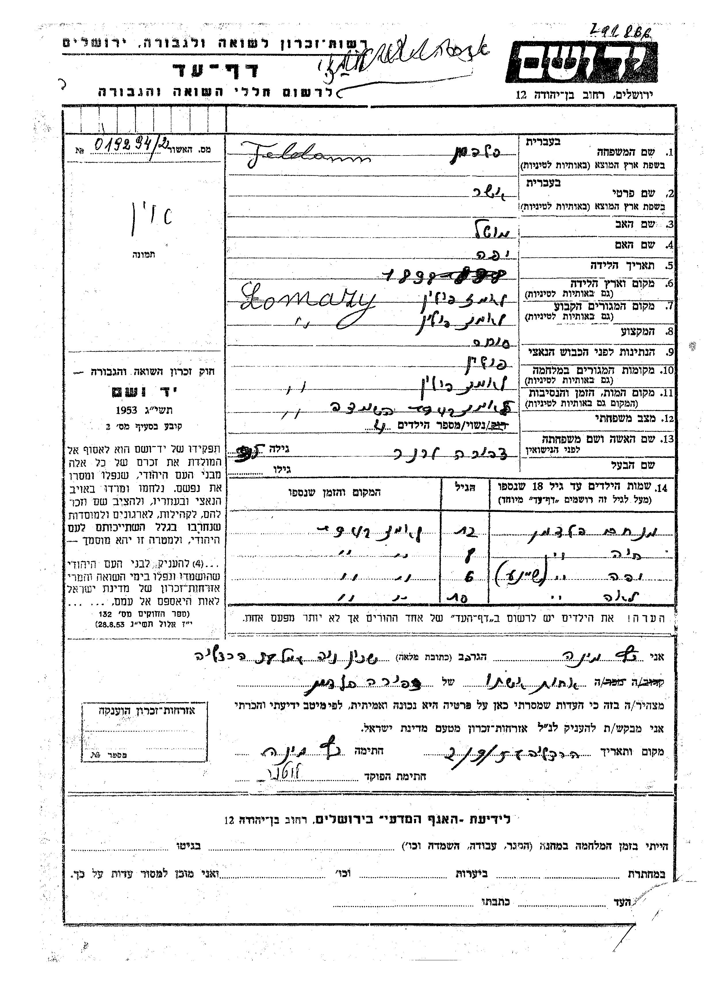 Menakhem Feldman wurde Er war der Sohn von Asher und Dvora. Er war Kind. Vor dem Zweiten Weltkrieg lebte er in Lomazy, Polen. Während des Krieges war er in Lomazy, Polen.
