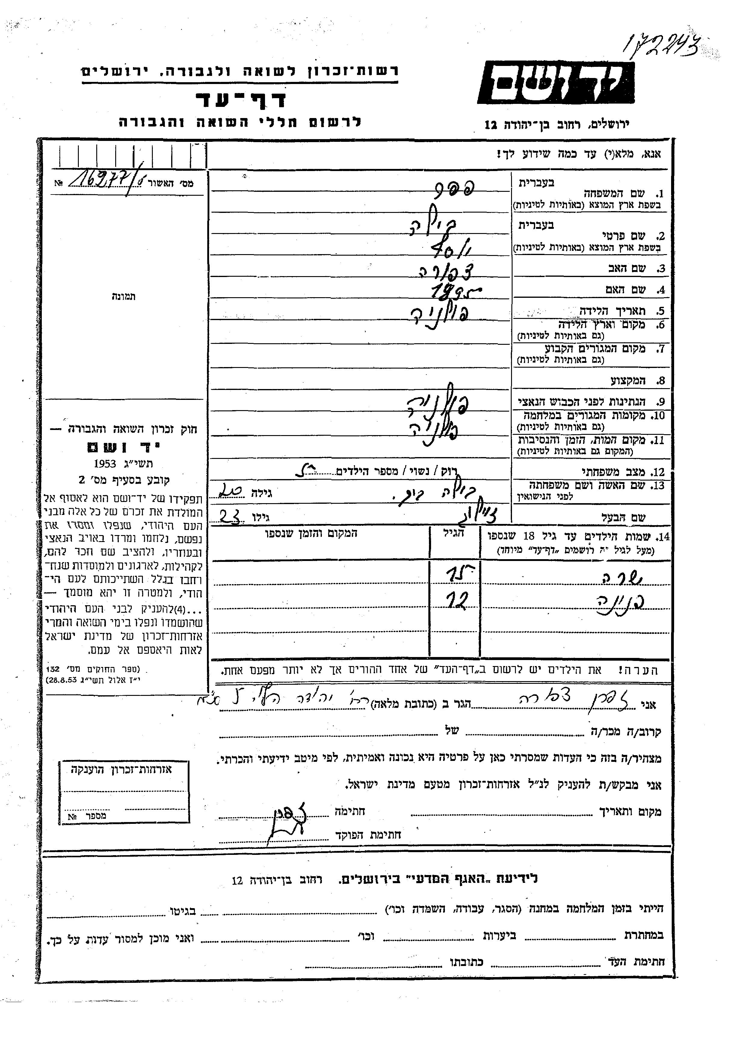 Aufenthaltsort während des Krieges/Schoah