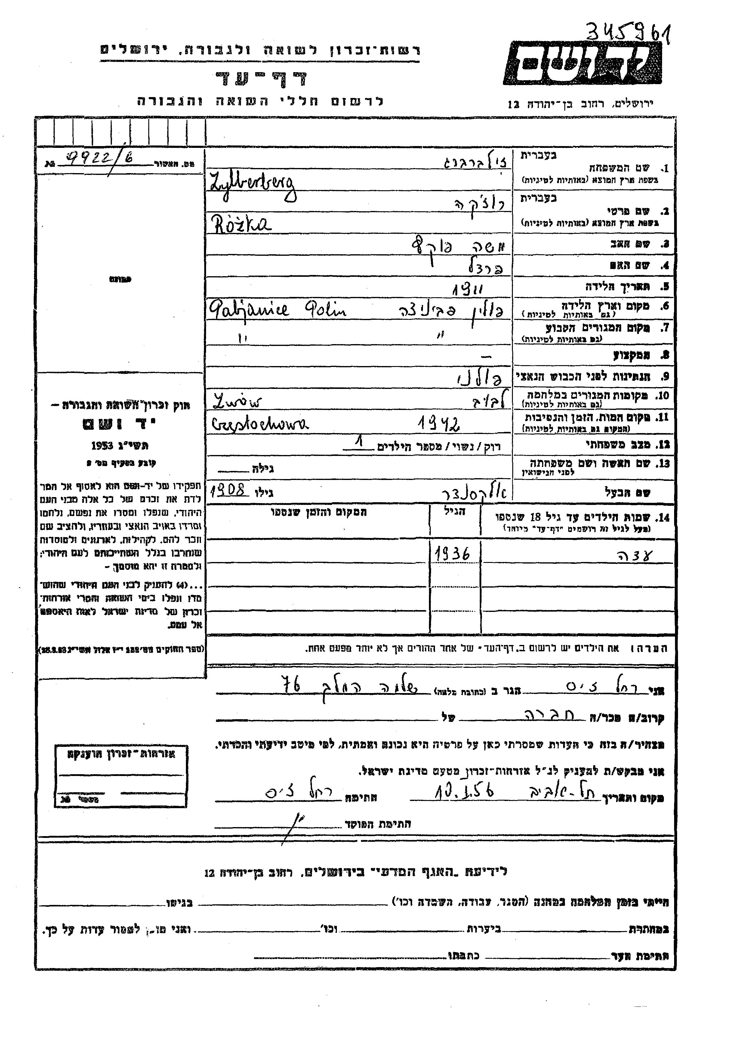 Ada Zylberberg wurde im Jahr 1936 geboren. Er/sie war der/ die Sohn/Tochter von Aleksander und Rozka, geb. Fuks. Er/Sie war Kind. Vor dem Zweiten Weltkrieg er/sie in Pabjanice, Polen. Während des Krieges war er/sie in Lwow, Polen.