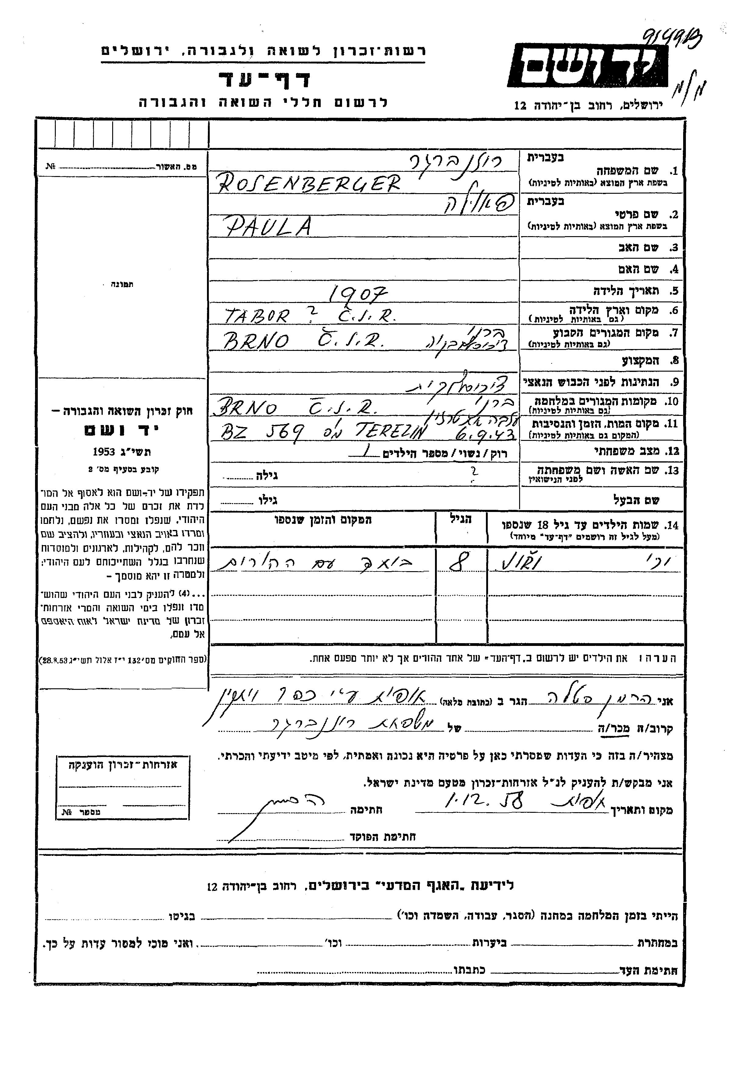 Jiri Yaroslav Rosenberger Rozenberg wurde Er war der Sohn von Paula. Er war Kind. Vor dem Zweiten Weltkrieg lebte er in Brno, Tschechoslowakei. Während des Krieges war er in Brno, Tschechoslowakei.