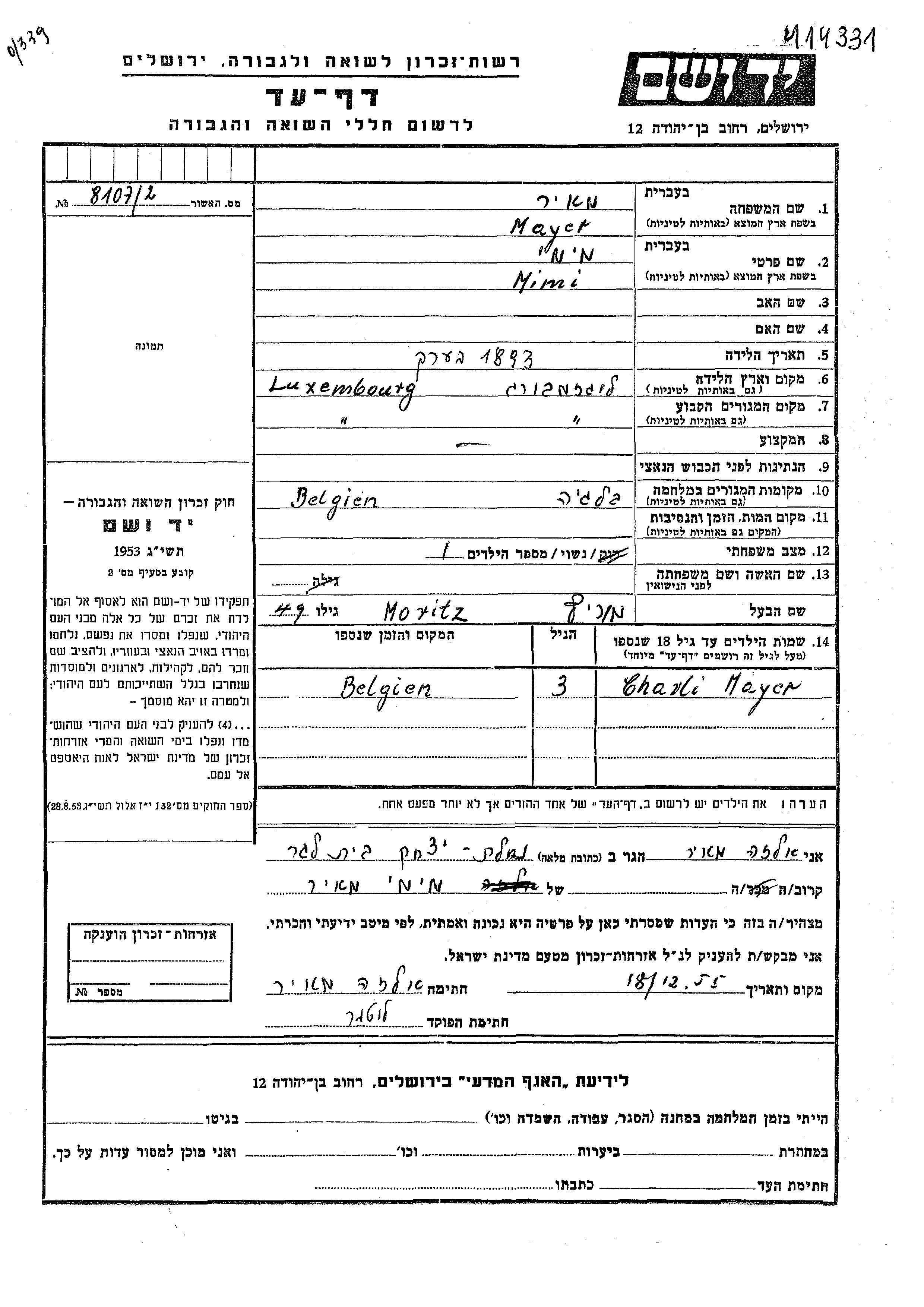 Charli Mayer wurde Er war der Sohn von Moritz und Mimi. Er war Kind. Vor dem Zweiten Weltkrieg lebte er in Luxemburg. Während des Krieges war er in Belgien.