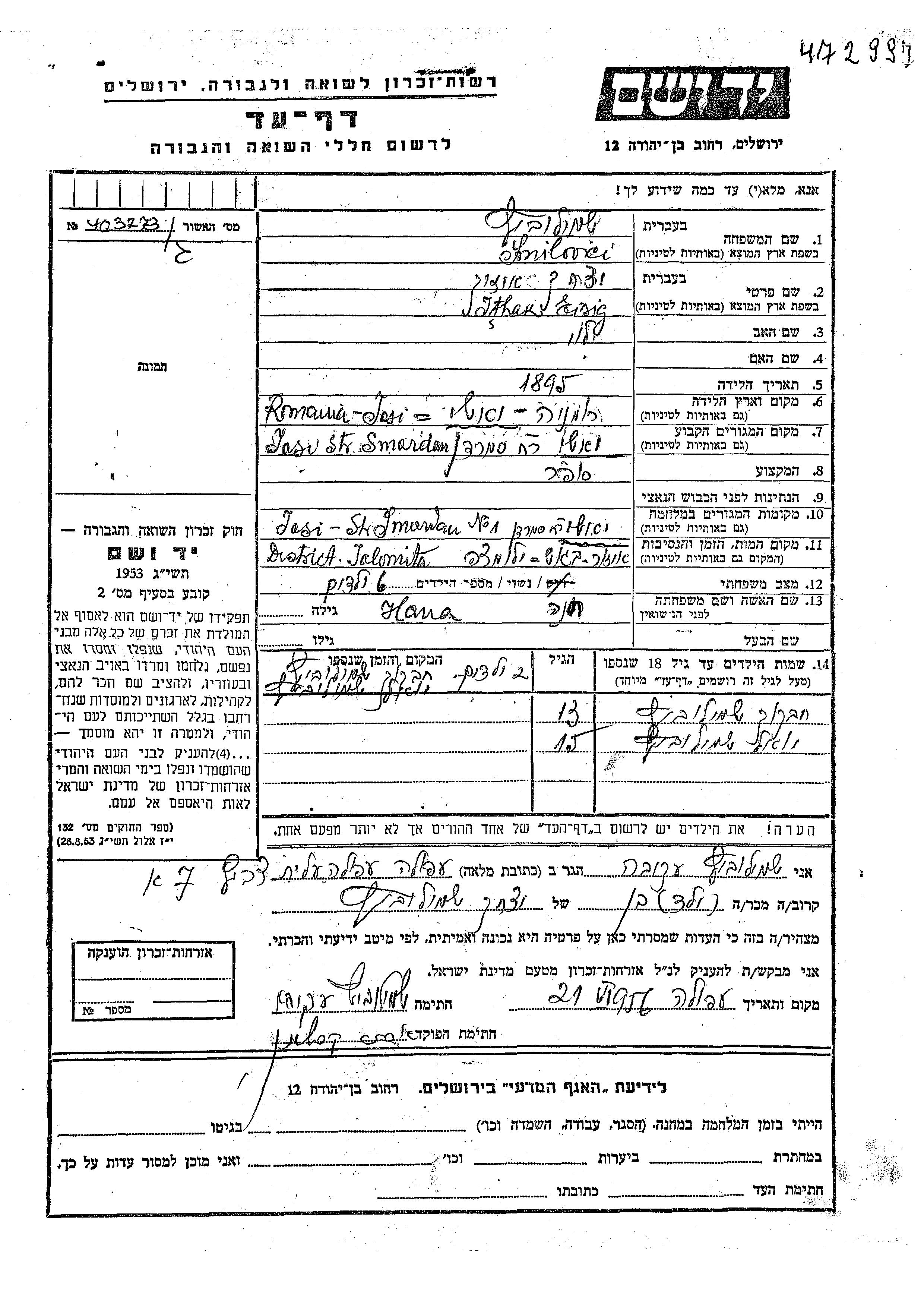 Smilovici Yoel Iasi, Rumänien Gedenkblatt