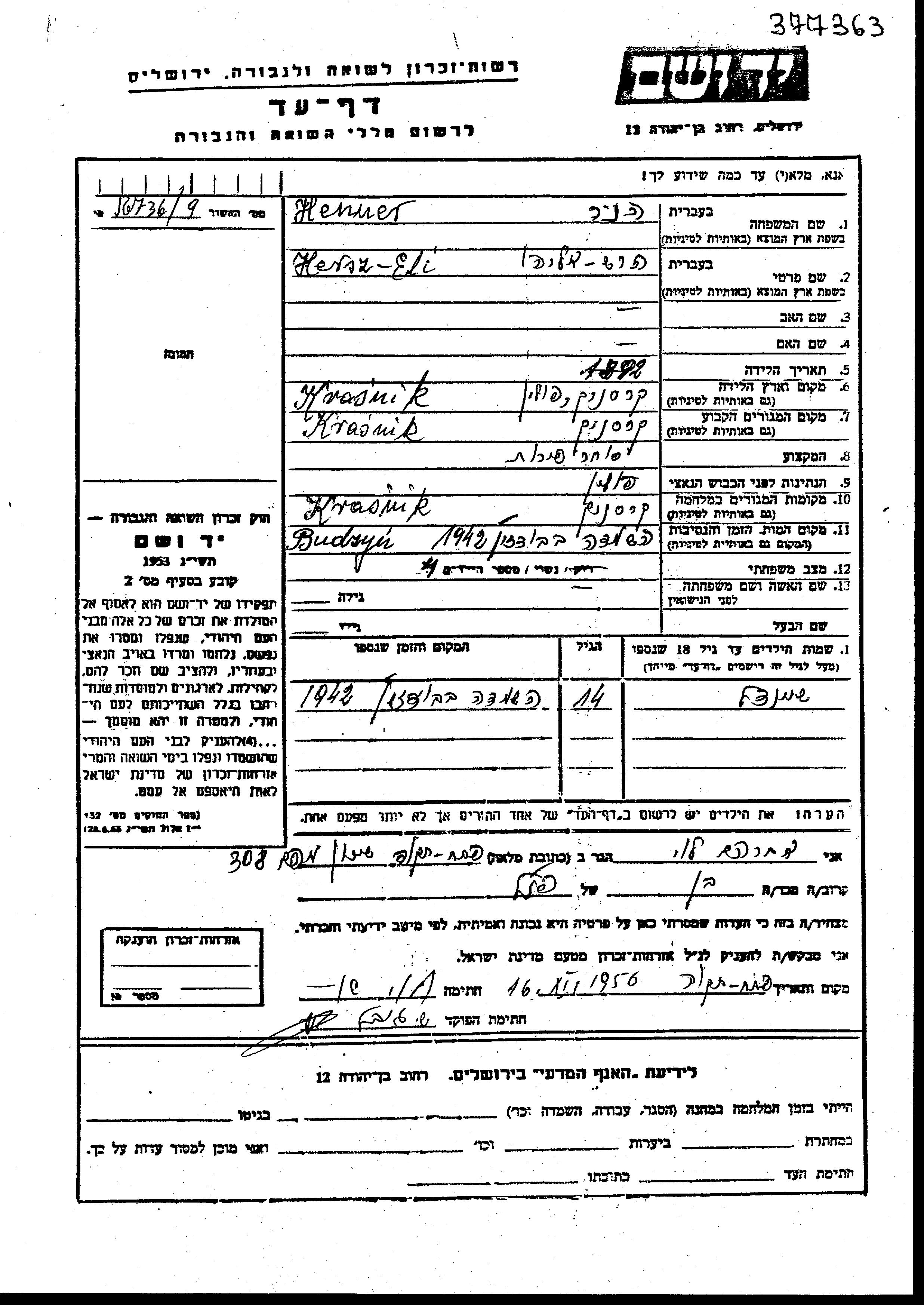 Henner Hersz Eli Eliahu 1892 Krašnik, Polen Gedenkblatt