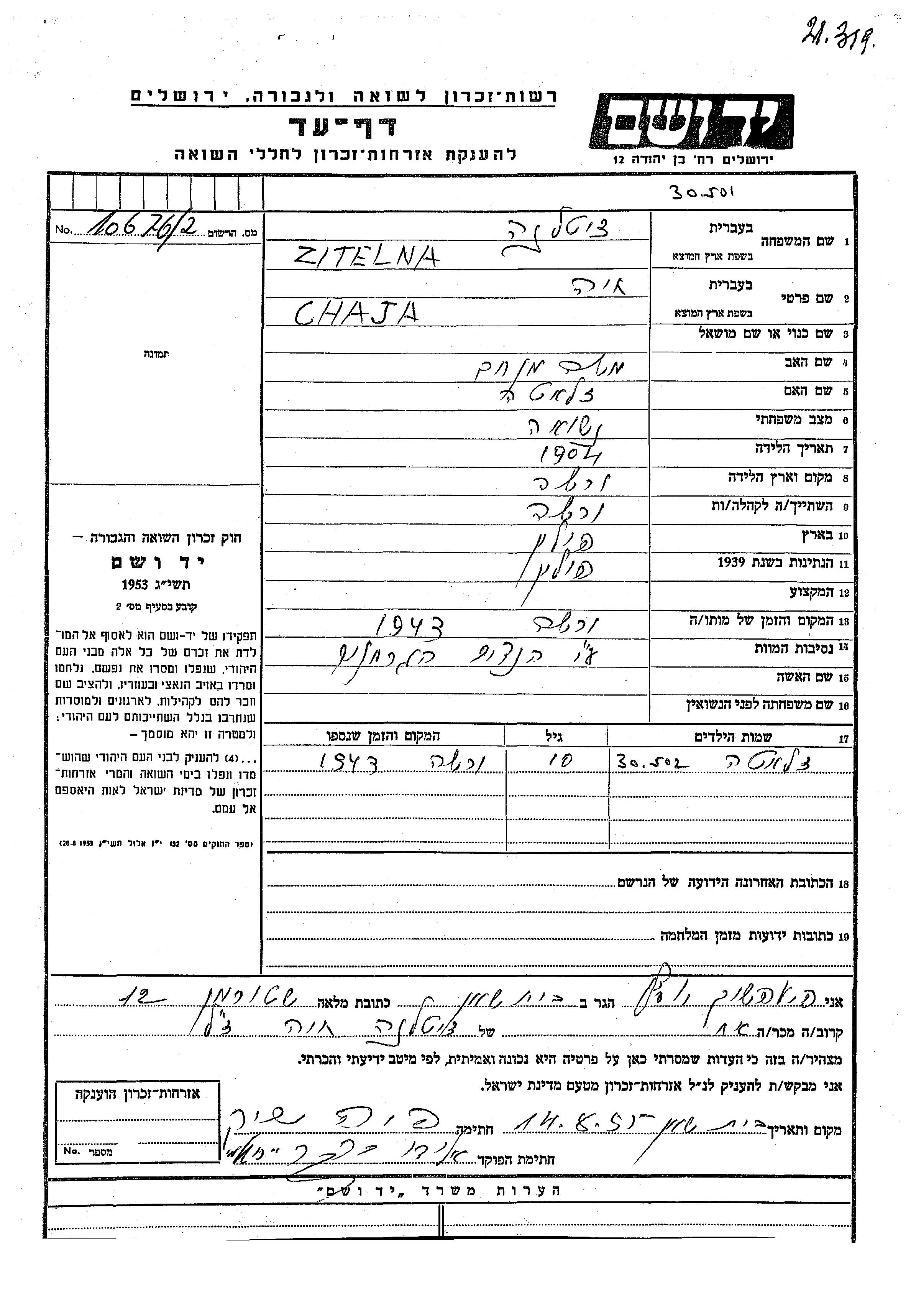 Zlata Zitelna wurde Sie war die Tochter von Chaja. Sie war Kind. Vor dem Zweiten Weltkrieg lebte sie in Warsaw, Polen. Während des Krieges war sie in Polen.