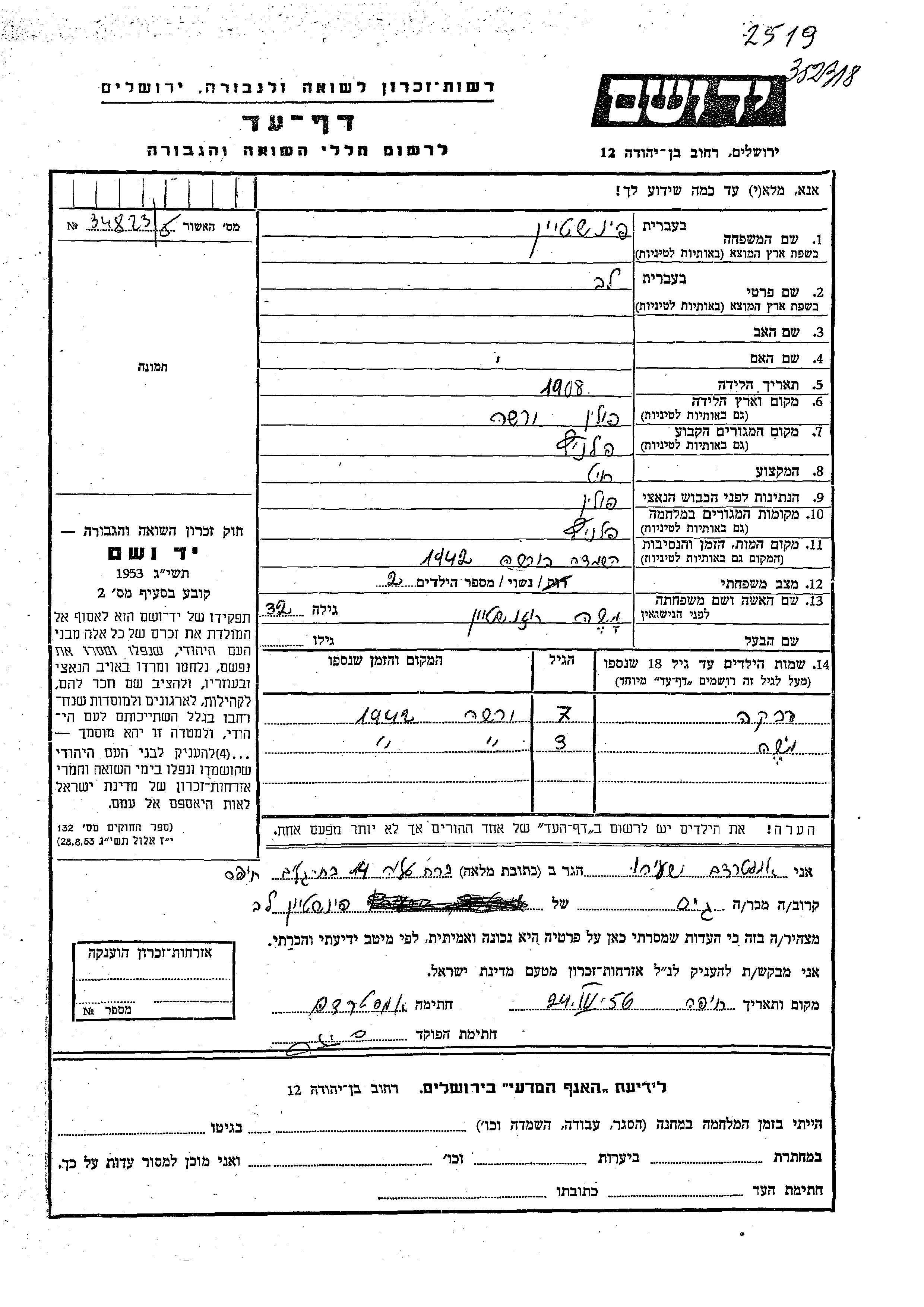 Feinshtein Rivka Falenica, Polen Gedenkblatt