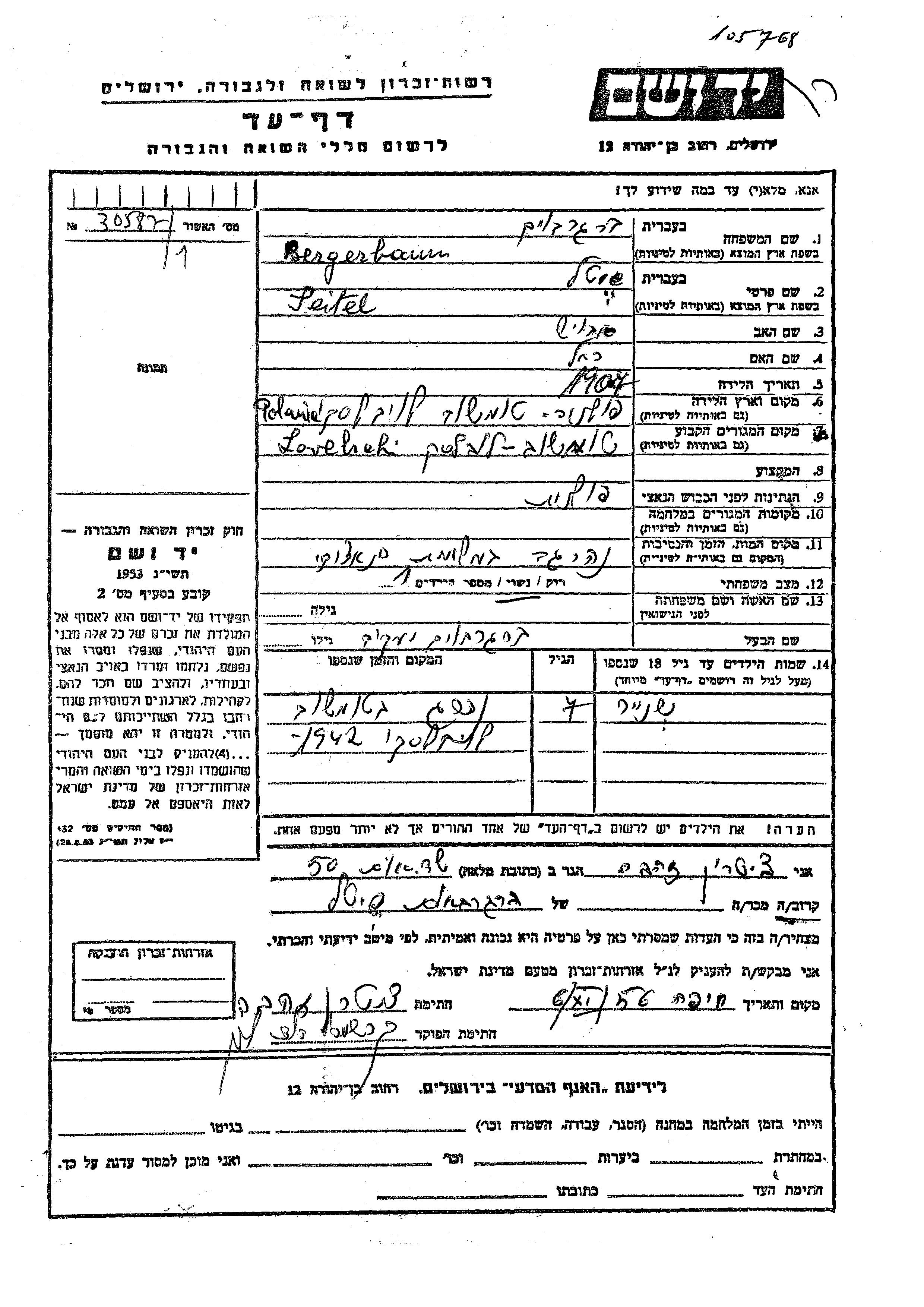 Shneiur Bergerbaum wurde Er war der Sohn von Yaakov und Seitel Shatl. Er war Kind. Vor dem Zweiten Weltkrieg lebte er in Tomaszow, Polen.
