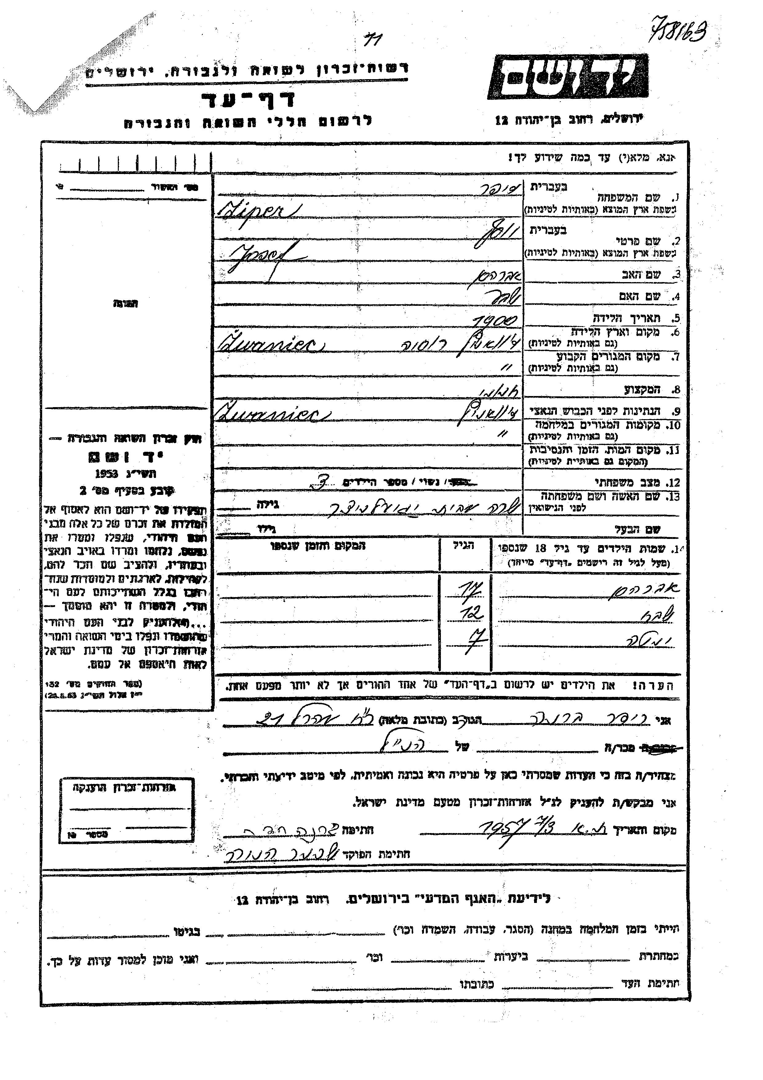 Shevakh Ziper wurde Er war der Sohn von Josef und Sara, geb. Iagelnitzer. Er war Kind. Vor dem Zweiten Weltkrieg lebte er in Zwaniec, Ukraine (UdSSR). Während des Krieges war er in Zwaniec, Ukraine (UdSSR).