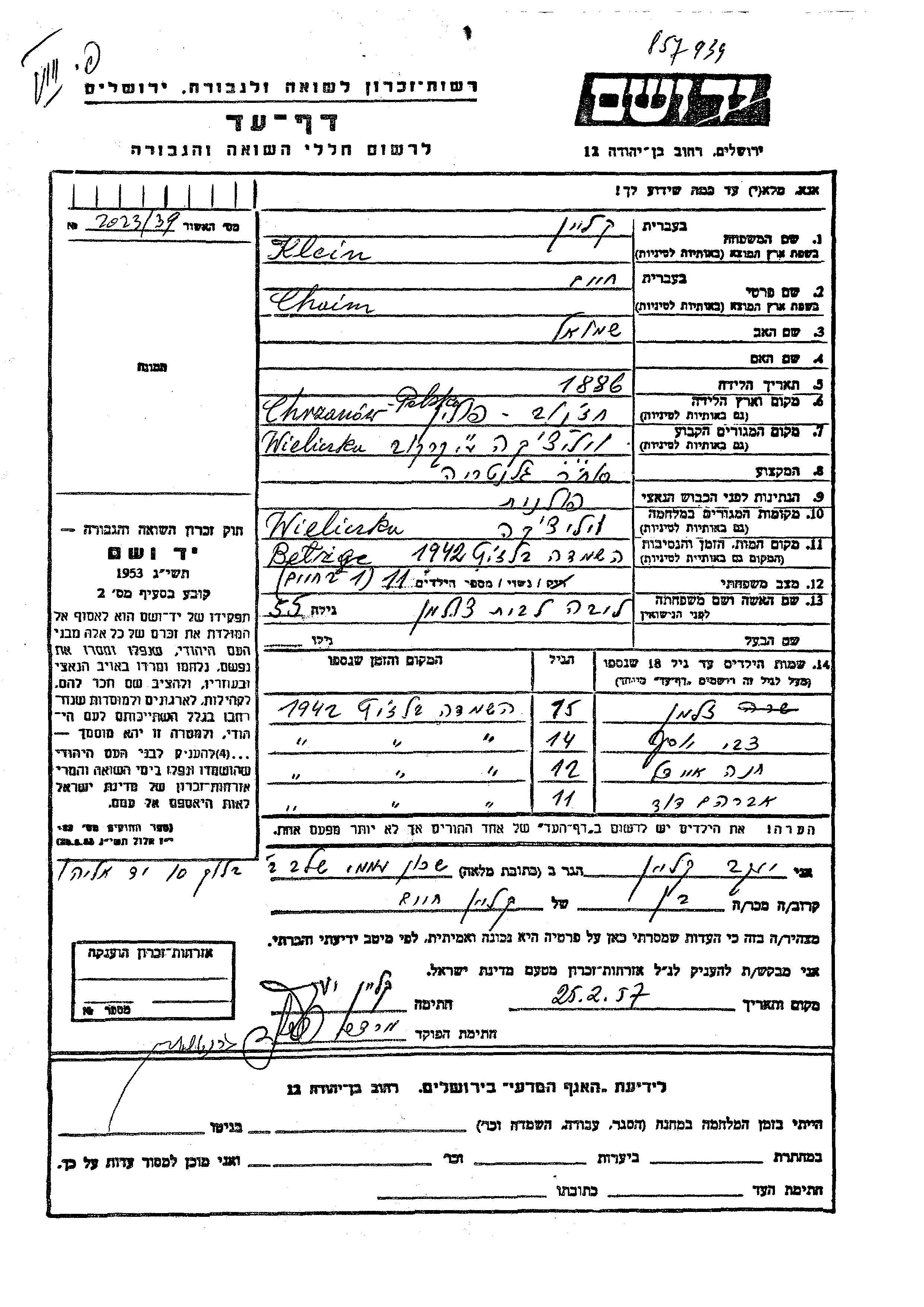 Khana Eidel Klein wurde Sie war die Tochter von Chaim und Luba, geb. Tzolman. Sie war Kind. Vor dem Zweiten Weltkrieg lebte sie in Wieliczka, Polen. Während des Krieges war sie in Wieliczka, Polen.