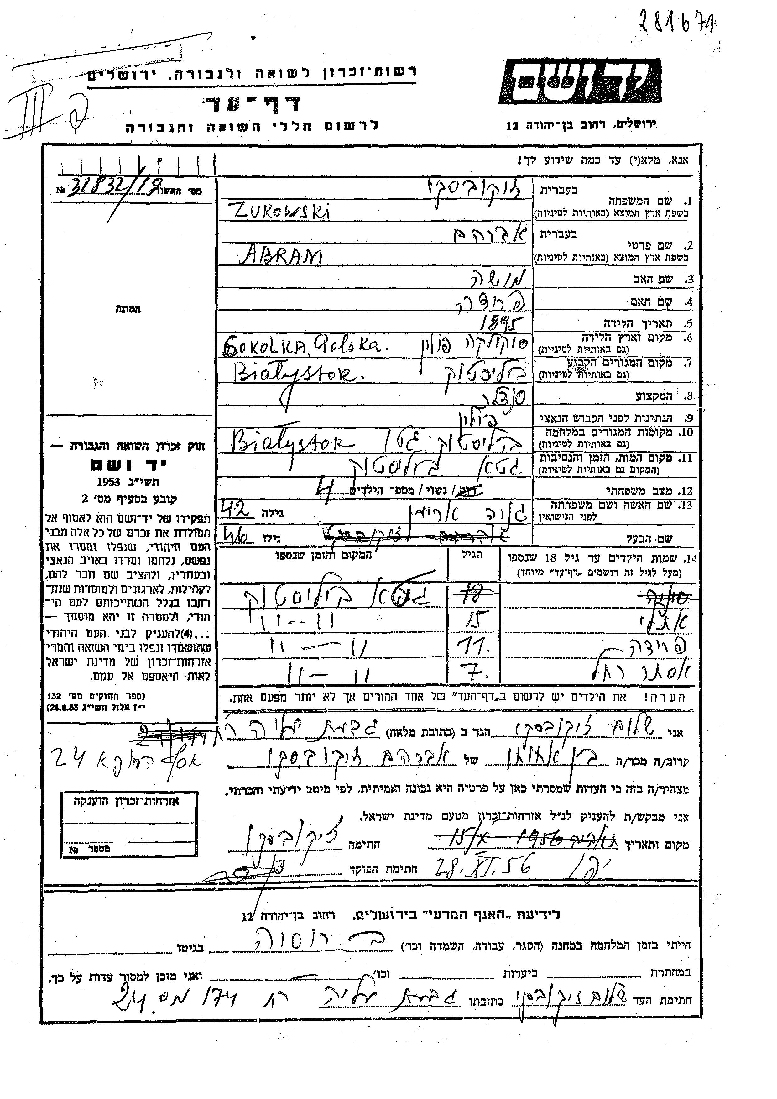 Frida Zukowski wurde Sie war die Tochter von Abram und Genya, geb. Arian. Sie war Kind. Vor dem Zweiten Weltkrieg lebte sie in Bialystok, Polen. Während des Krieges war sie in Bialystok, Polen.