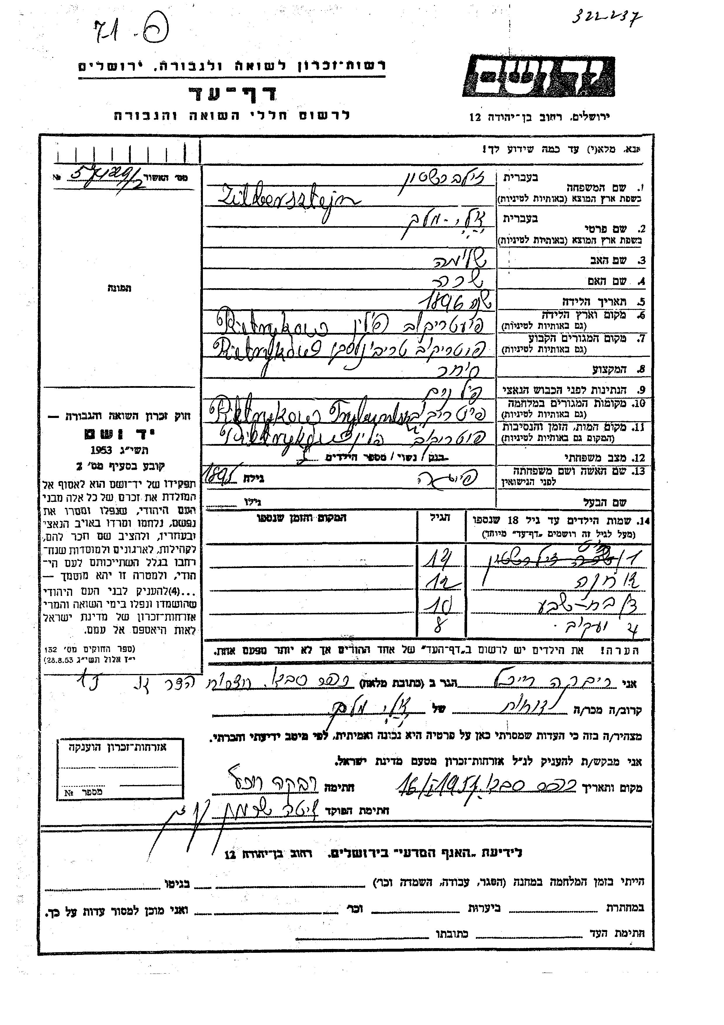 Zilbersztejn Batsheva Piotrkow, Polen Gedenkblatt