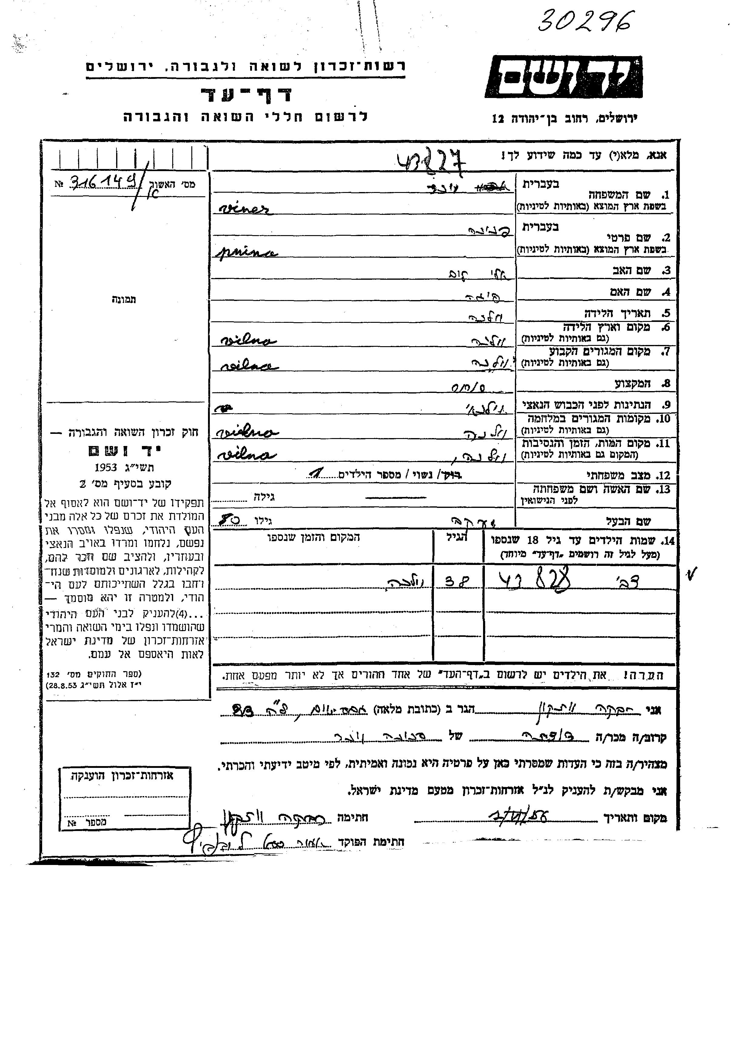 Tzvi Viner wurde Er/sie war der/ die Sohn/Tochter von Yaakov und Pnina. Vor dem Zweiten Weltkrieg er/sie in Vilna, Polen. Während des Krieges war er/sie in Vilna, Polen.