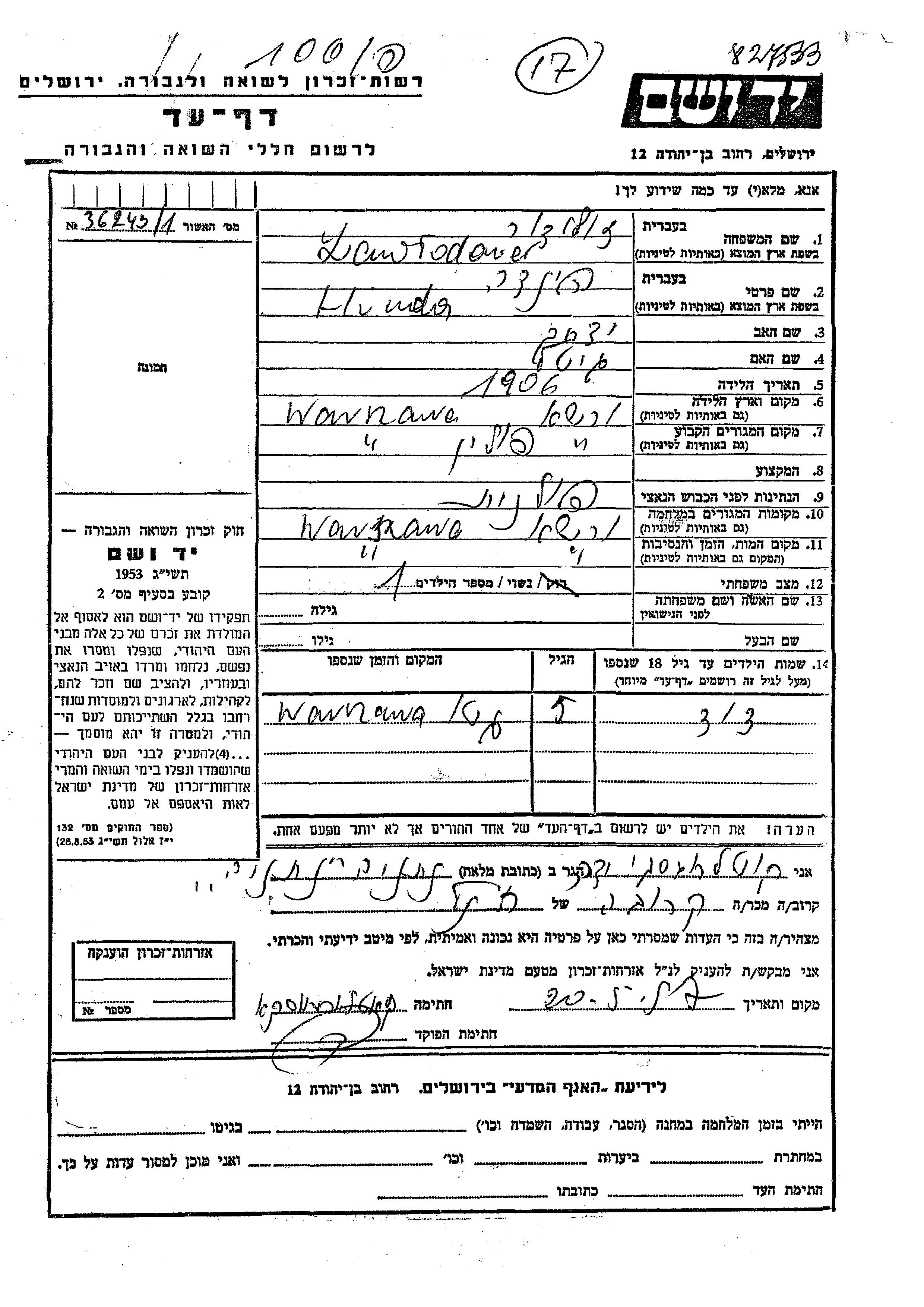 David Zawlodower wurde Er war der Sohn von Hinda. Er war Kind. Vor dem Zweiten Weltkrieg lebte er in Warsaw, Polen. Während des Krieges war er in Warsaw, Polen.
