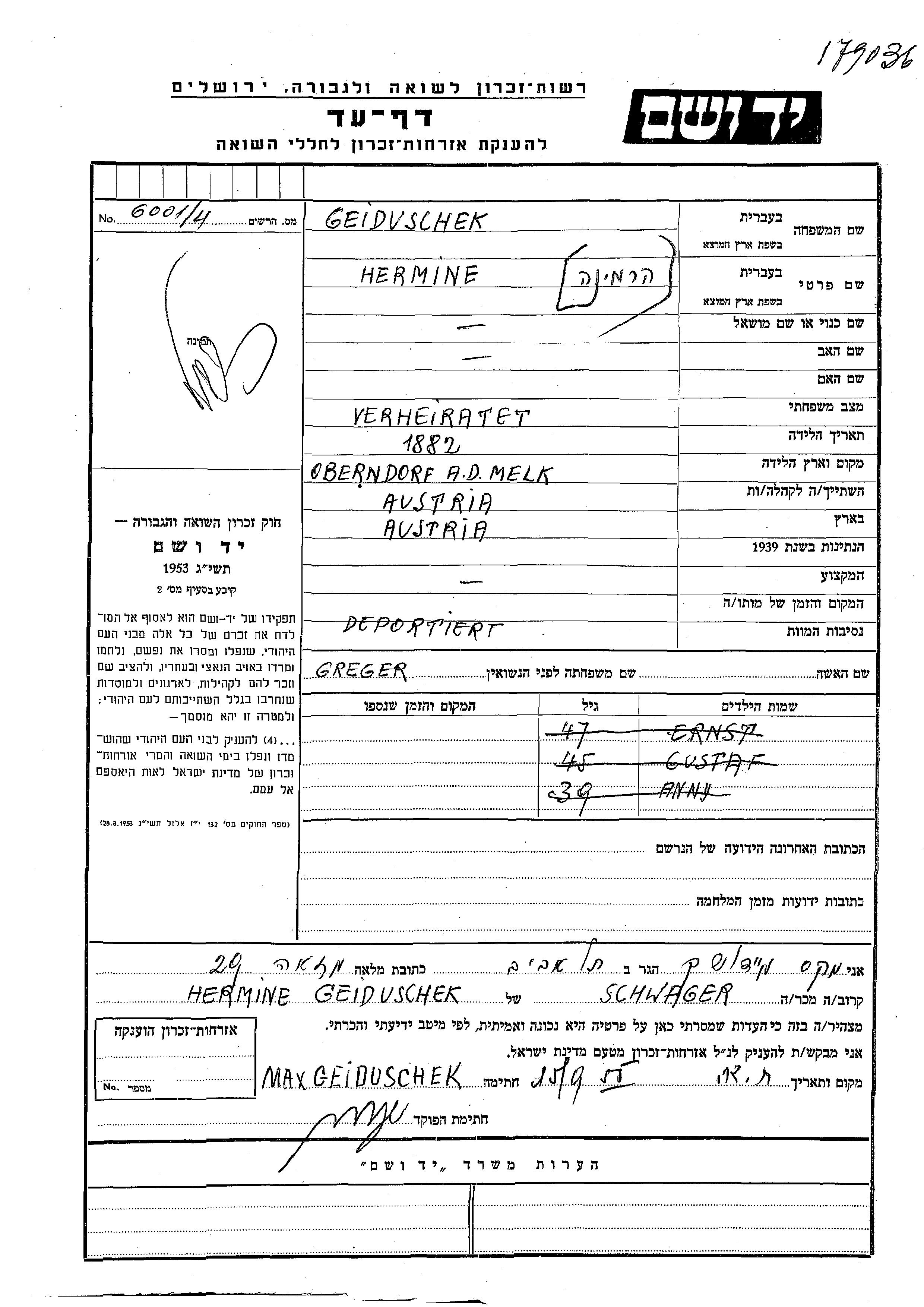 Ernst Geiduschek wurde Er/sie war der/ die Sohn/Tochter von Hermine, geb. Greger. Vor dem Zweiten Weltkrieg er/sie in Österreich.