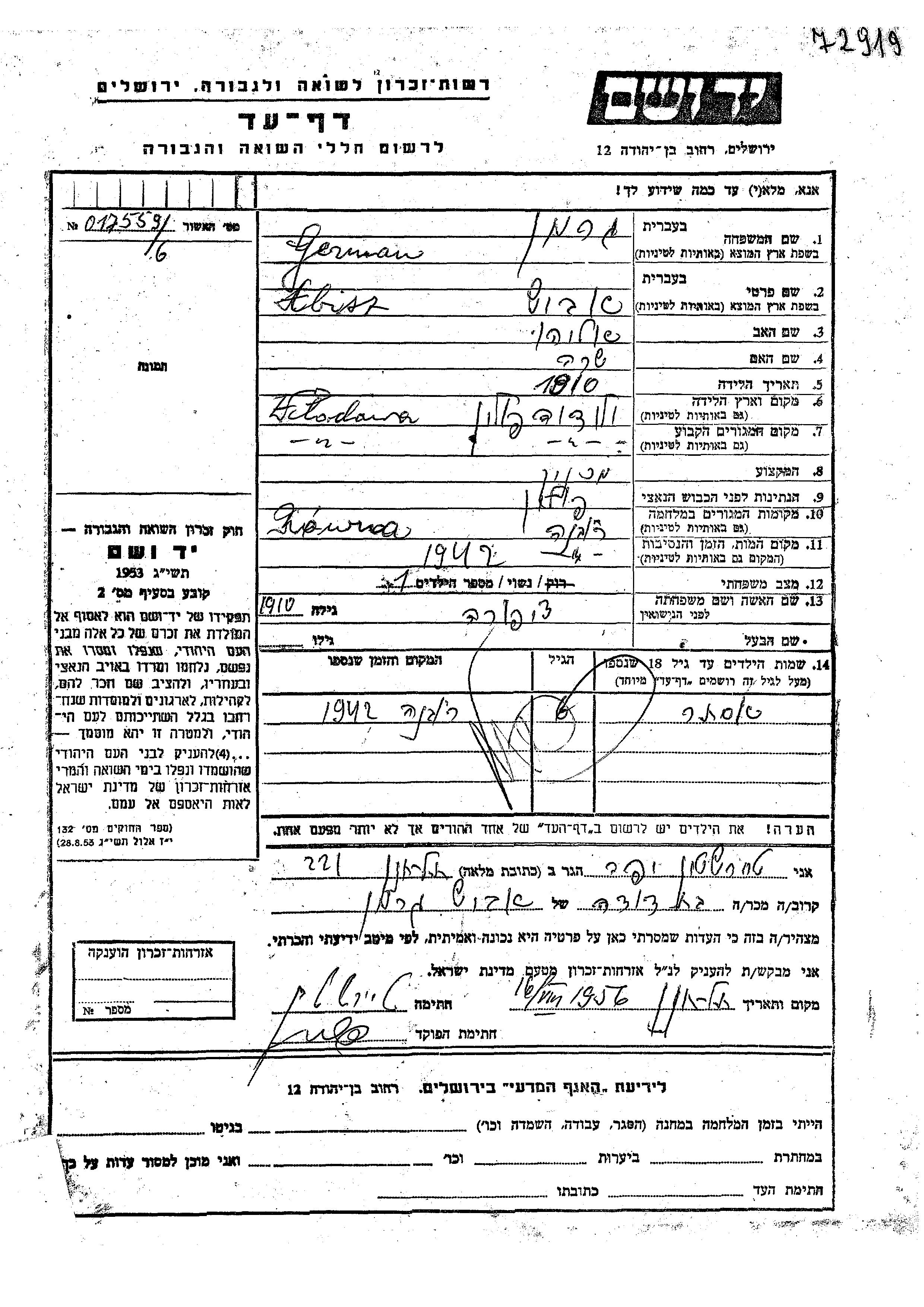 Ester German wurde Sie war die Tochter von Abisz und Tzipora. Sie war Kind. Vor dem Zweiten Weltkrieg lebte sie in Wlodawa, Polen. Während des Krieges war sie in Rowna, Polen.