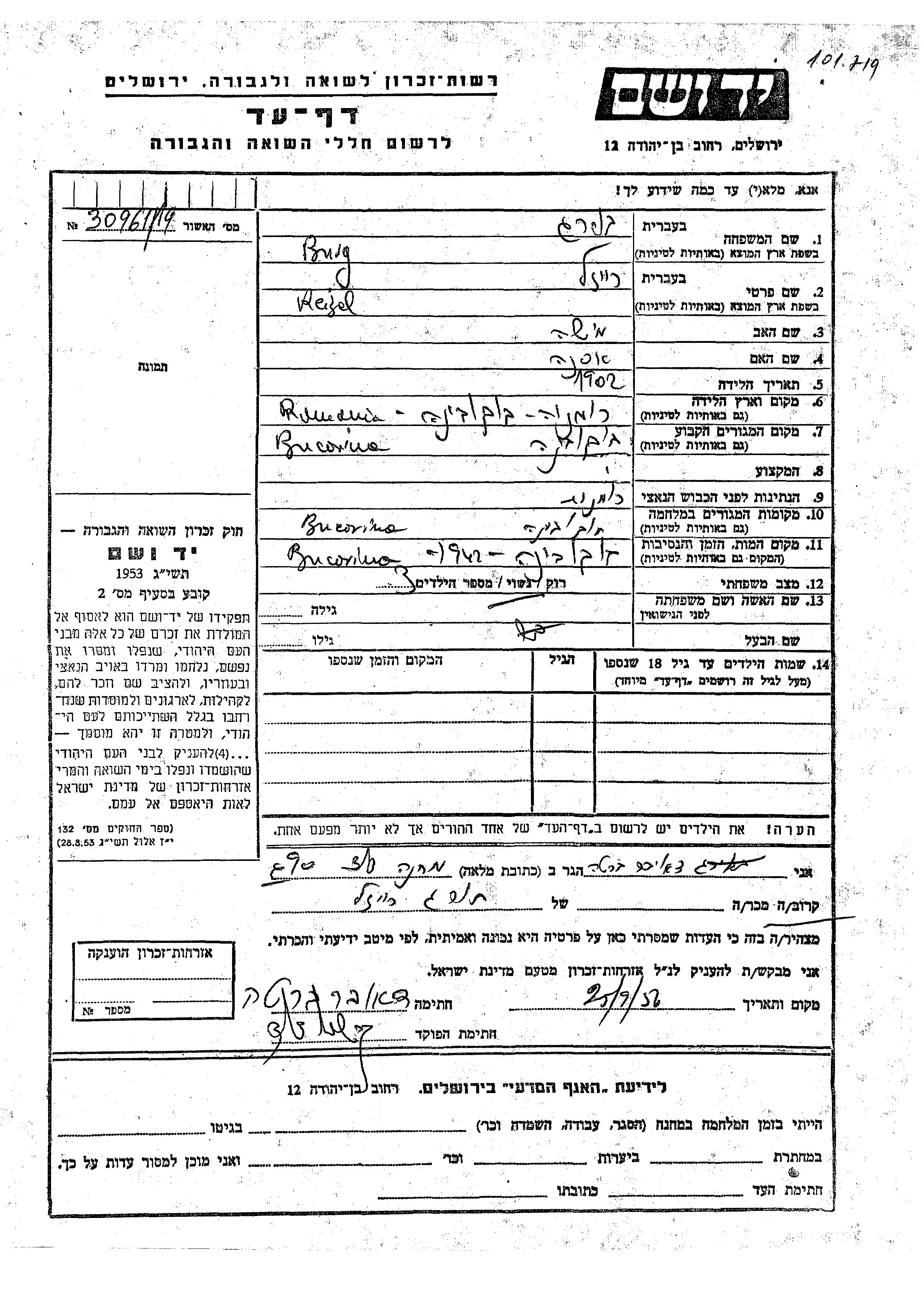 Reizl wurde in der Schoah ermordet. Todesort: Bukovina, Rumänien im Jahr 1942.