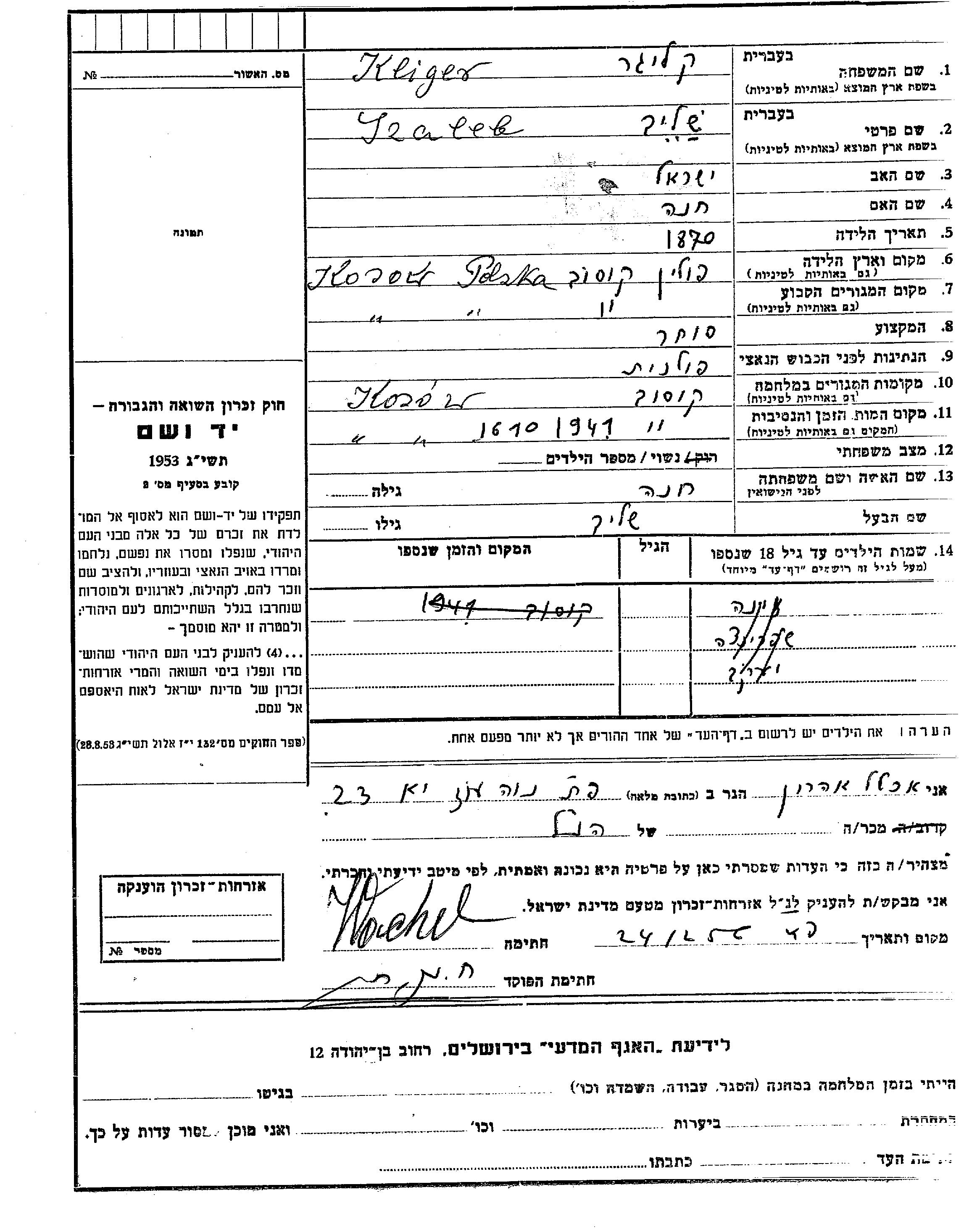 Kliger Sheina Kosow, Polen Gedenkblatt