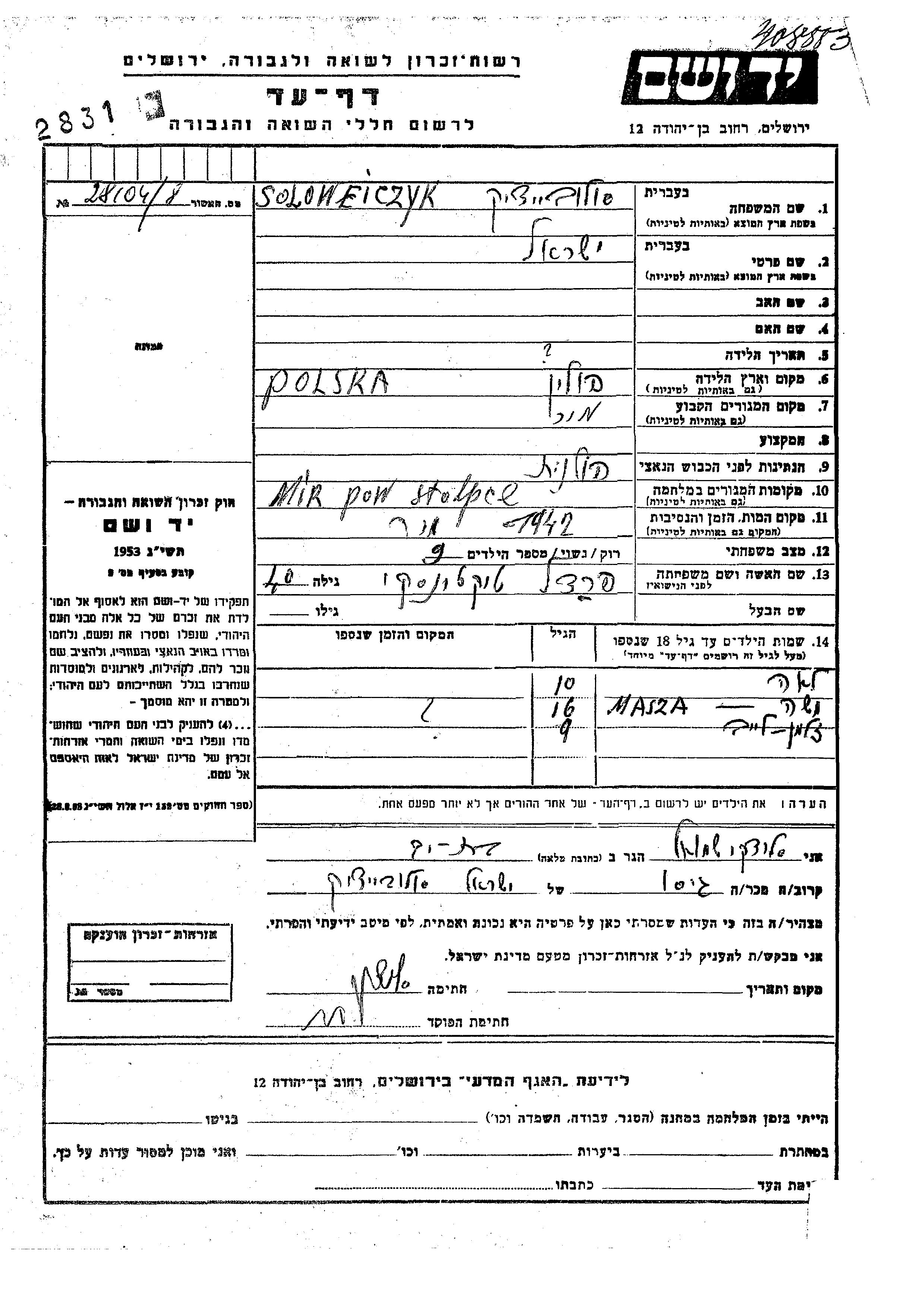 Aufenthaltsort während des Krieges/Schoah
