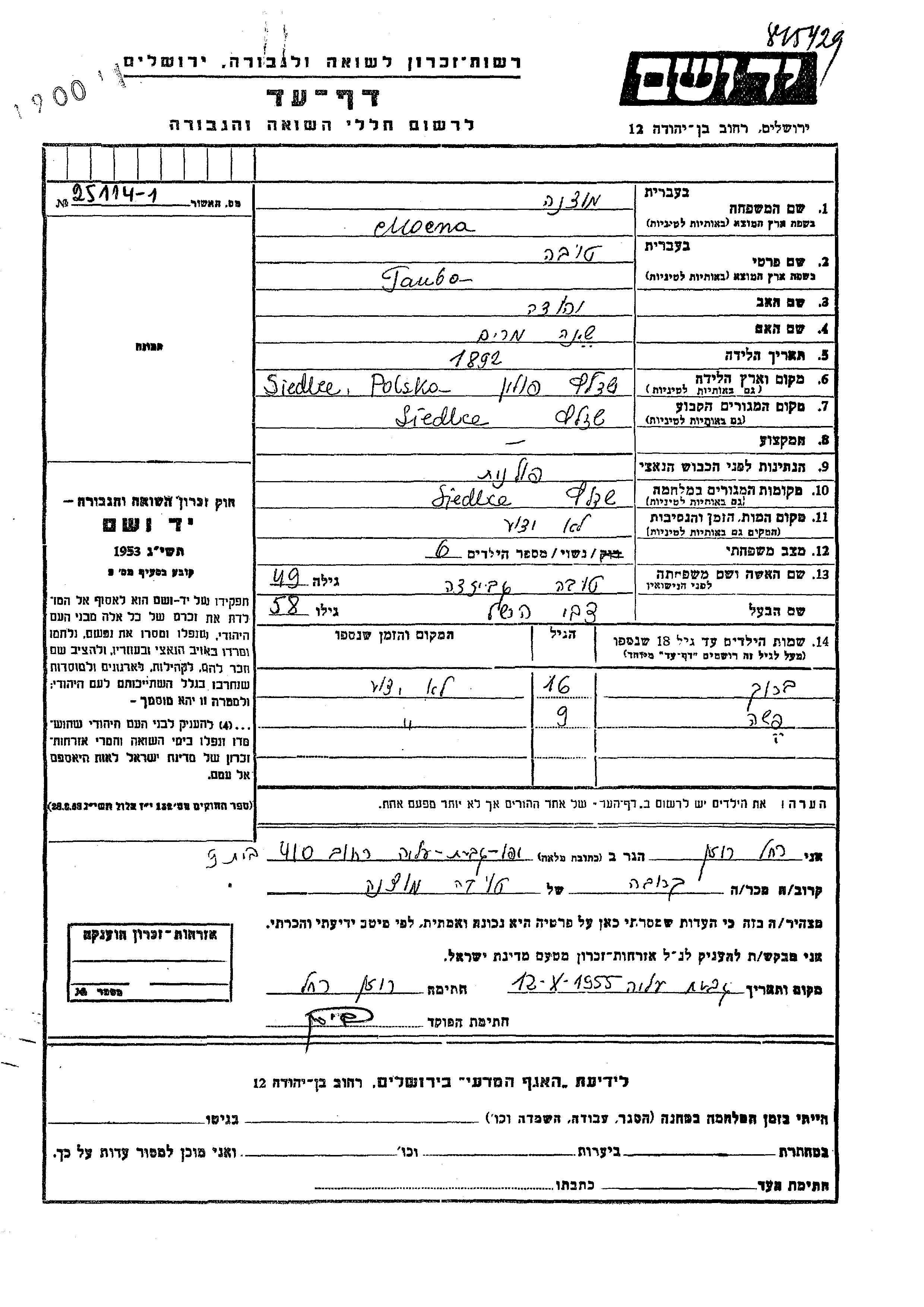 Pasha Mocna wurde Er/sie war der/ die Sohn/Tochter von Tzvi Hershel und Touba Tova, geb. Gwiazda. Er/Sie war Kind. Vor dem Zweiten Weltkrieg er/sie in Siedlce, Polen. Während des Krieges war er/sie in Siedlce, Polen.