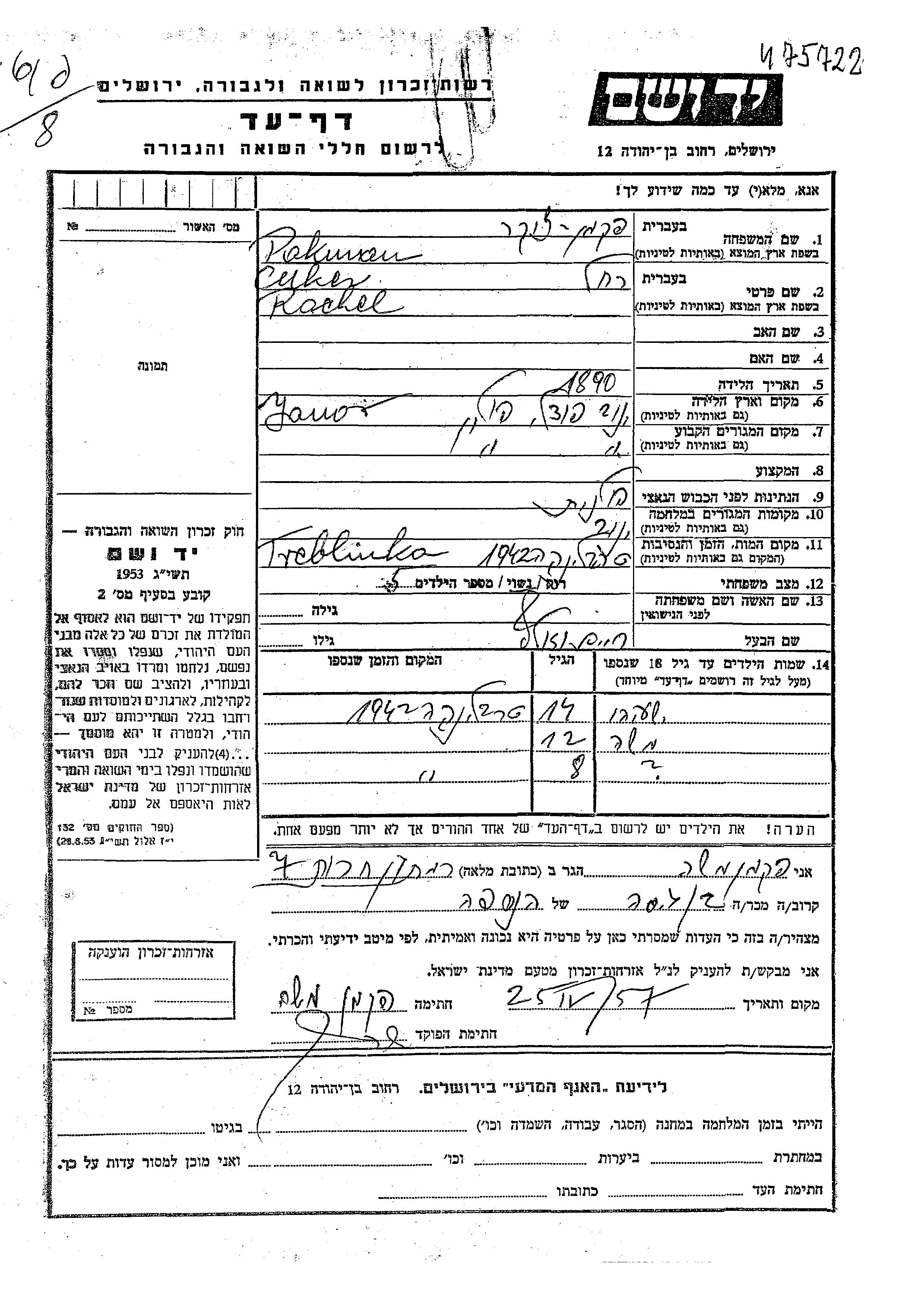Cuker Pakman Vorname unbekannt Janow Podlaski, Polen Gedenkblatt