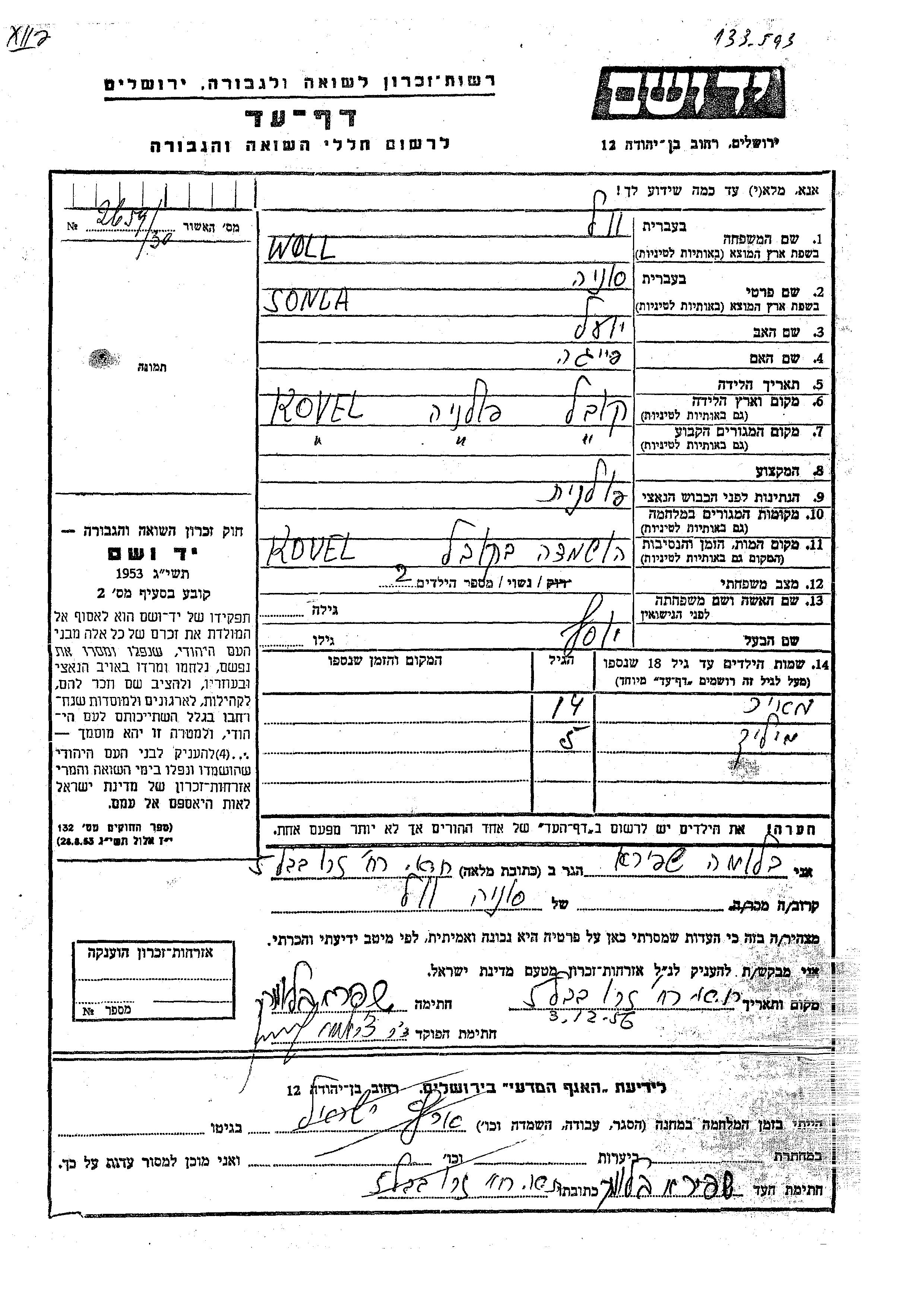 Meir Woll wurde Er war der Sohn von Yosef und Sonia. Er war Kind. Vor dem Zweiten Weltkrieg lebte er in Kowel, Polen.
