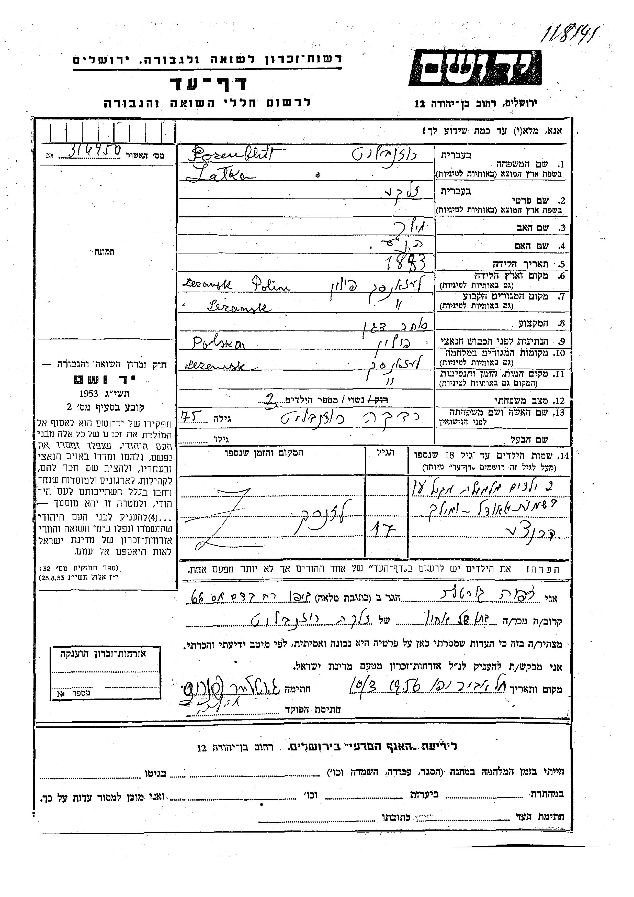 Brantze Rozenblut wurde Sie war die Tochter von Zalka Zelke und Rivka. Sie war Kind. Vor dem Zweiten Weltkrieg lebte sie in Lezansk, Polen. Während des Krieges war sie in Lezansk, Polen.