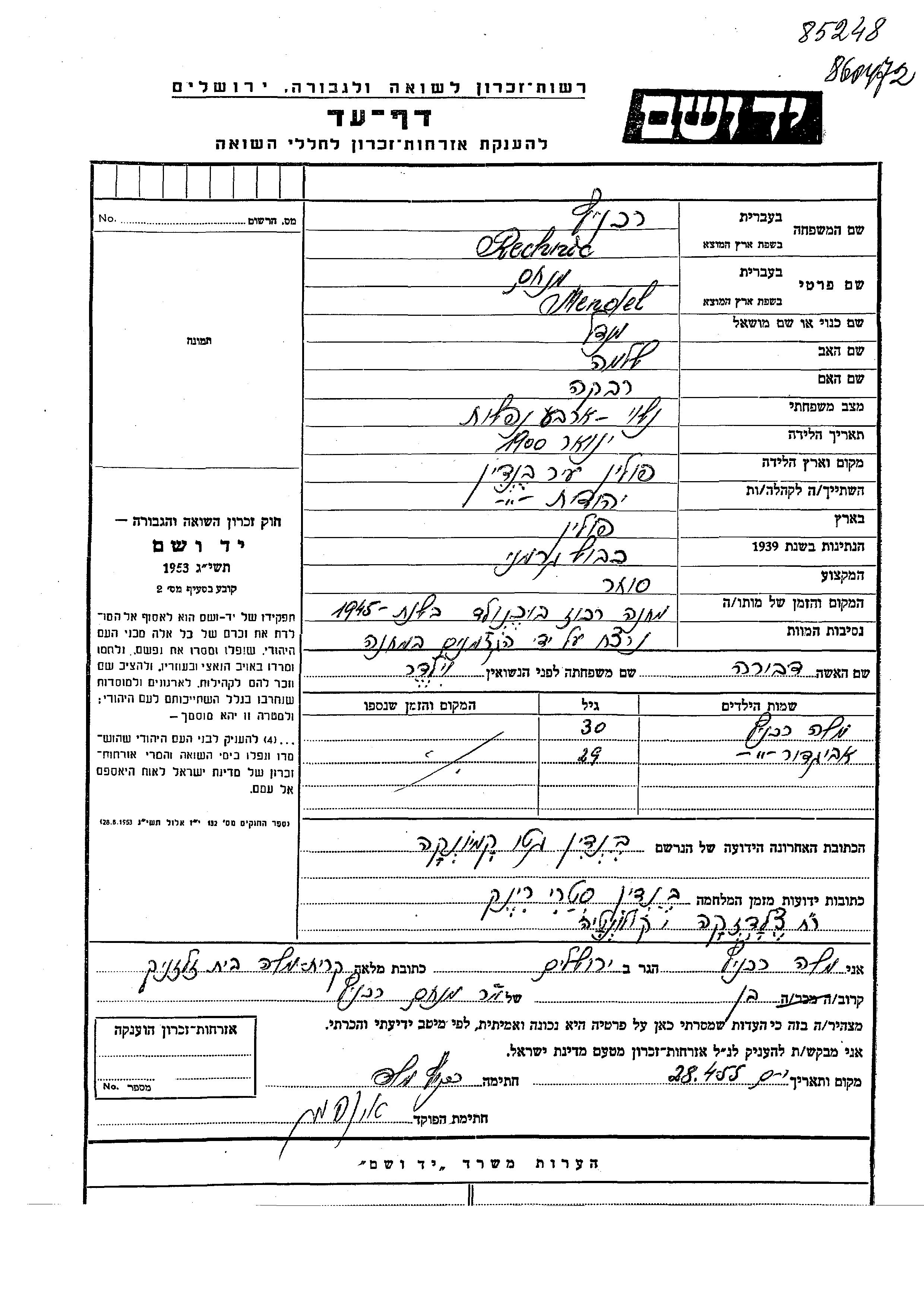 Mala Rechnic wurde Sie war die Tochter von Mendel Menakhem und Dvora, geb. Vilder. Vor dem Zweiten Weltkrieg lebte sie in Będzin, Polen. Während des Krieges war sie in Będzin, Polen.