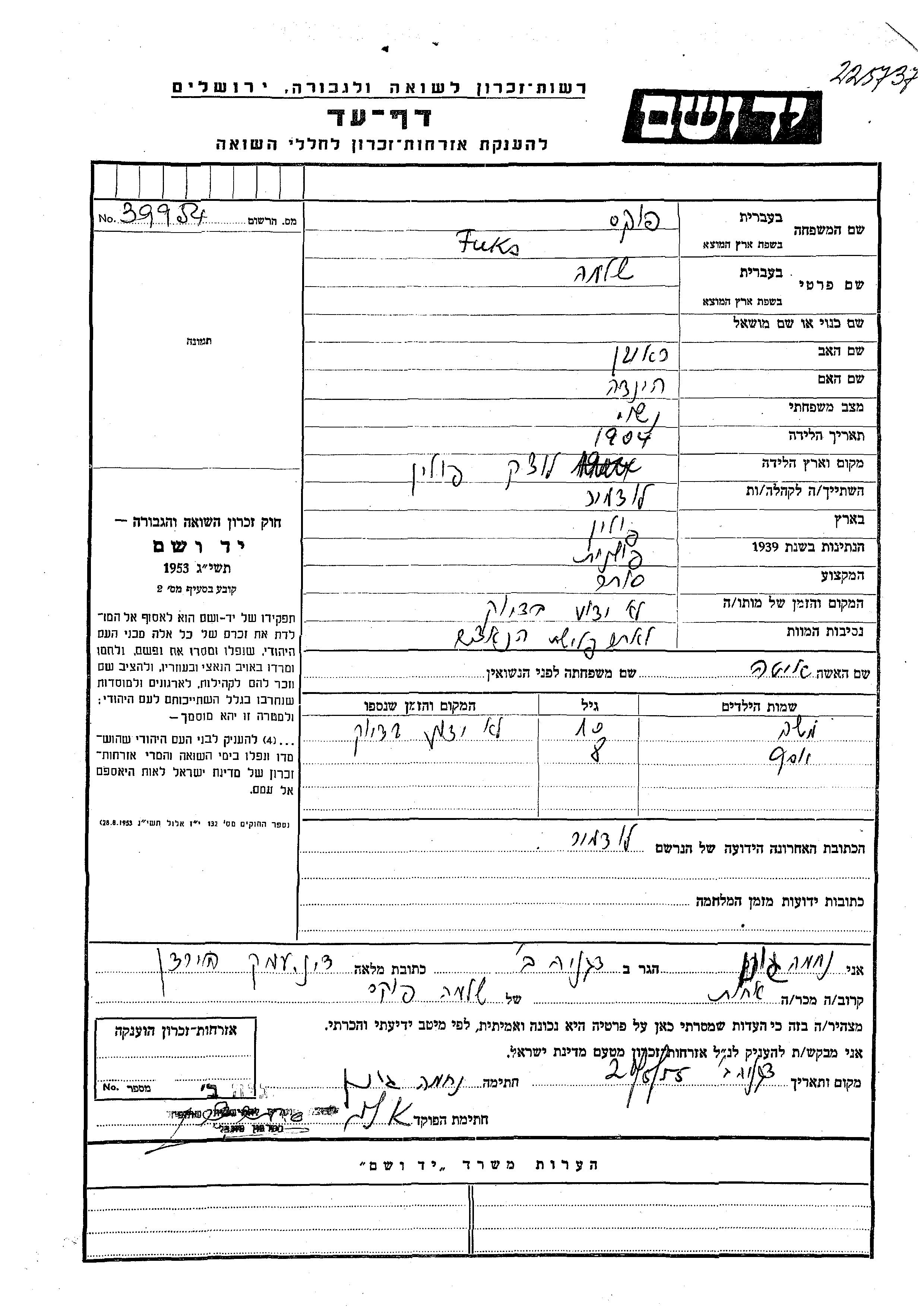 Yosef Fuks wurde Er war der Sohn von Shlomo und Ita. Er war Kind. Vor dem Zweiten Weltkrieg lebte er in Wlodzimierz, Polen.