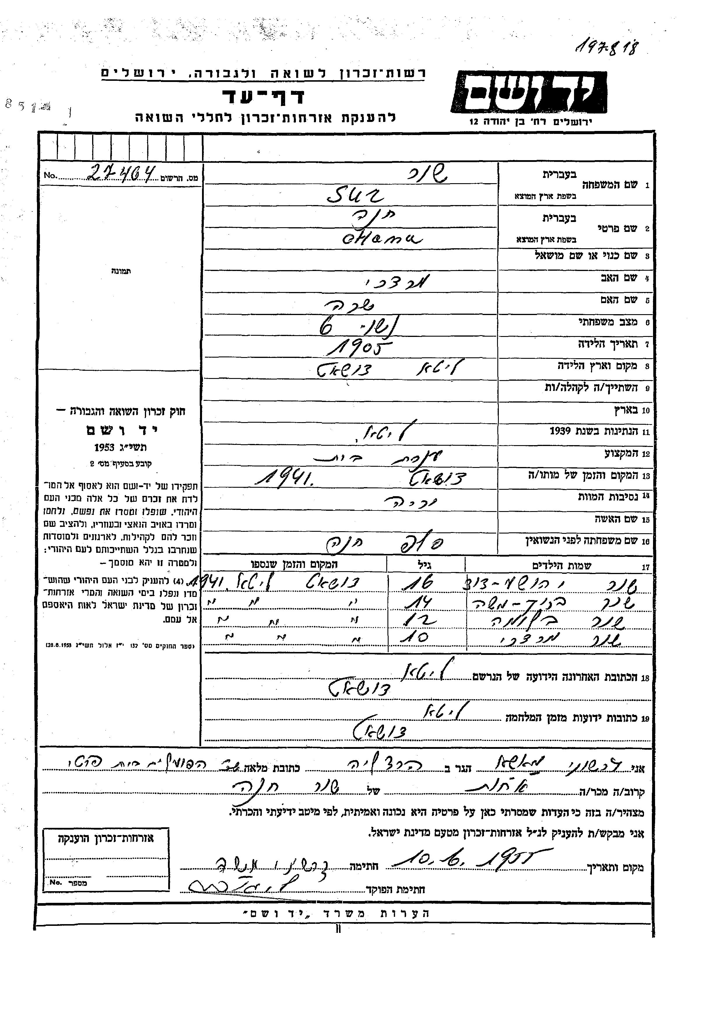 Suche nach einem Todesjahr im Zeitraum der Holocaust: 1933 bis 1945. Bitte wählen Sie 'Exakt' im Auswahlmenü, um nur nach einem einzelnen Jahr zu suchen, alternativ können Sie die flexibleren Optionen '+/- 2 Jahre' oder '+/- 5 Jahre' wählen.