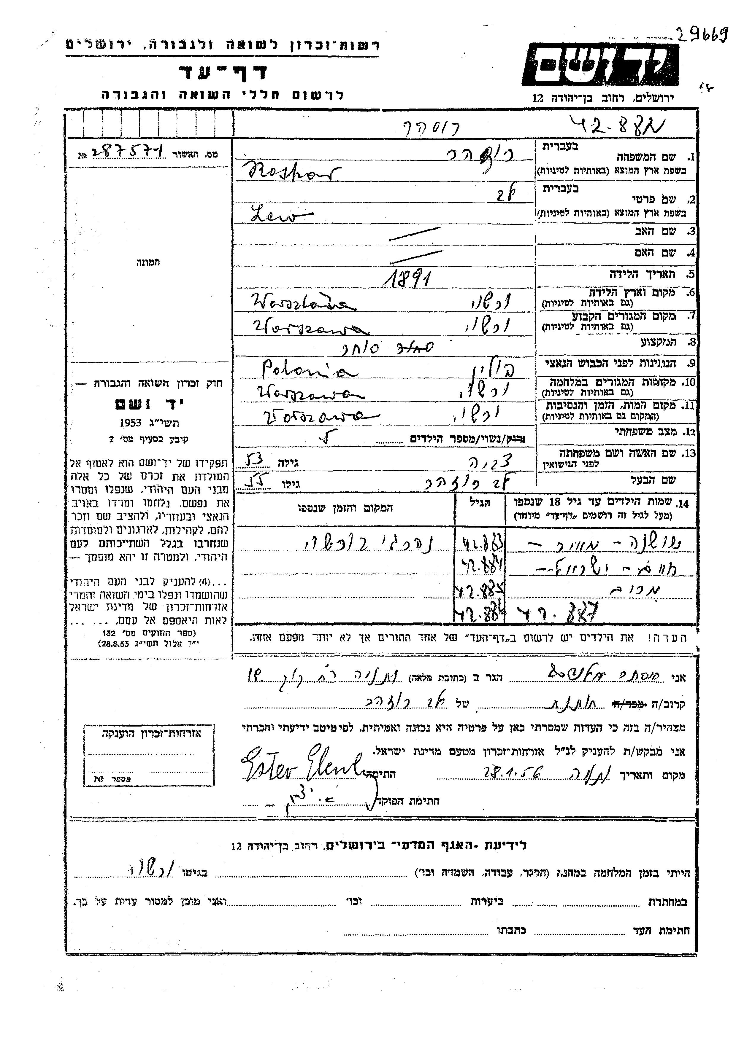 Roshar Shoshana Warszawa, Polen Gedenkblatt