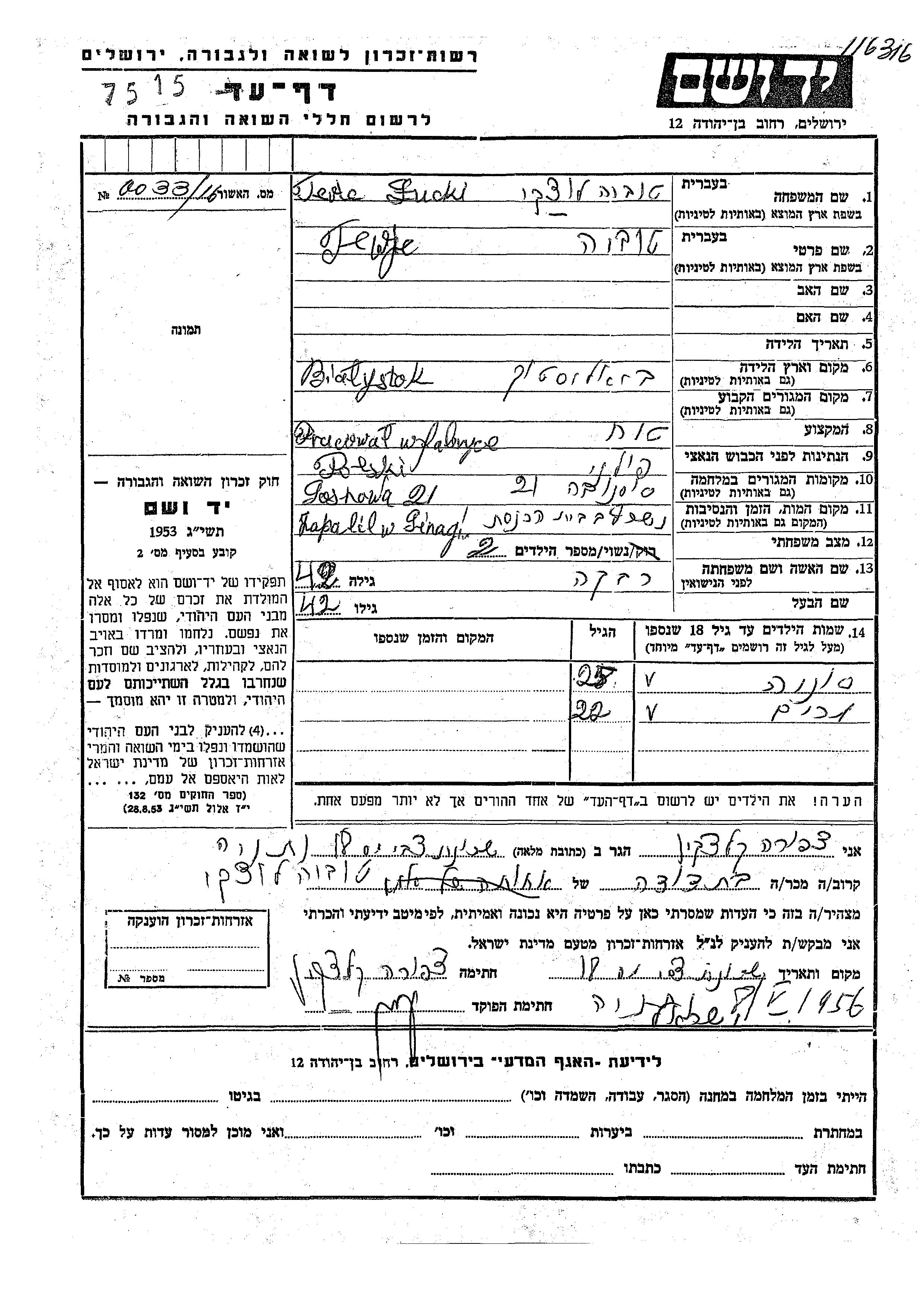 Miriam Lucki wurde Sie war die Tochter von Tewye und Rivka. Während des Krieges war sie in Bialystok, Polen.
