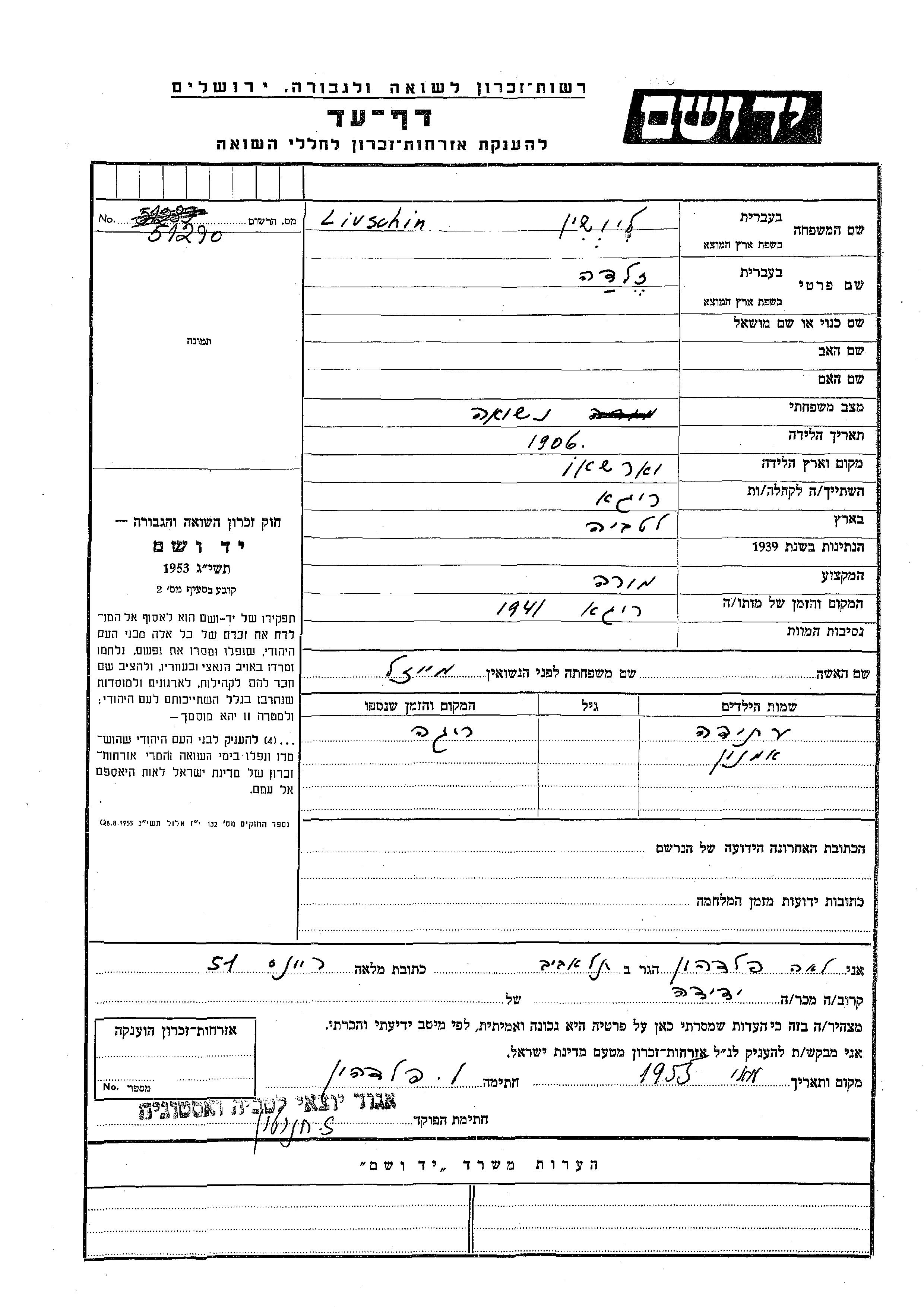 Amnon Livschin wurde Er war der Sohn von Zelda, geb. Meizel. Er war Kind.