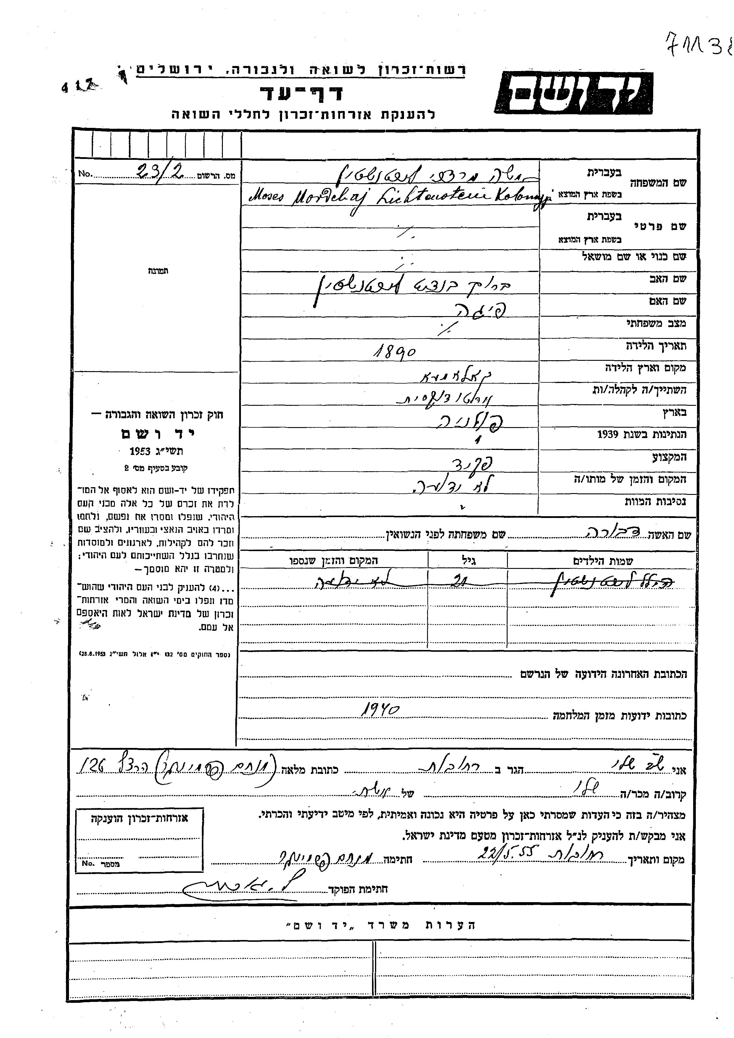 Hilel Lichtenstein wurde Er war der Sohn von Moshe Mordcha und Dvora. Vor dem Zweiten Weltkrieg lebte er in Polen.