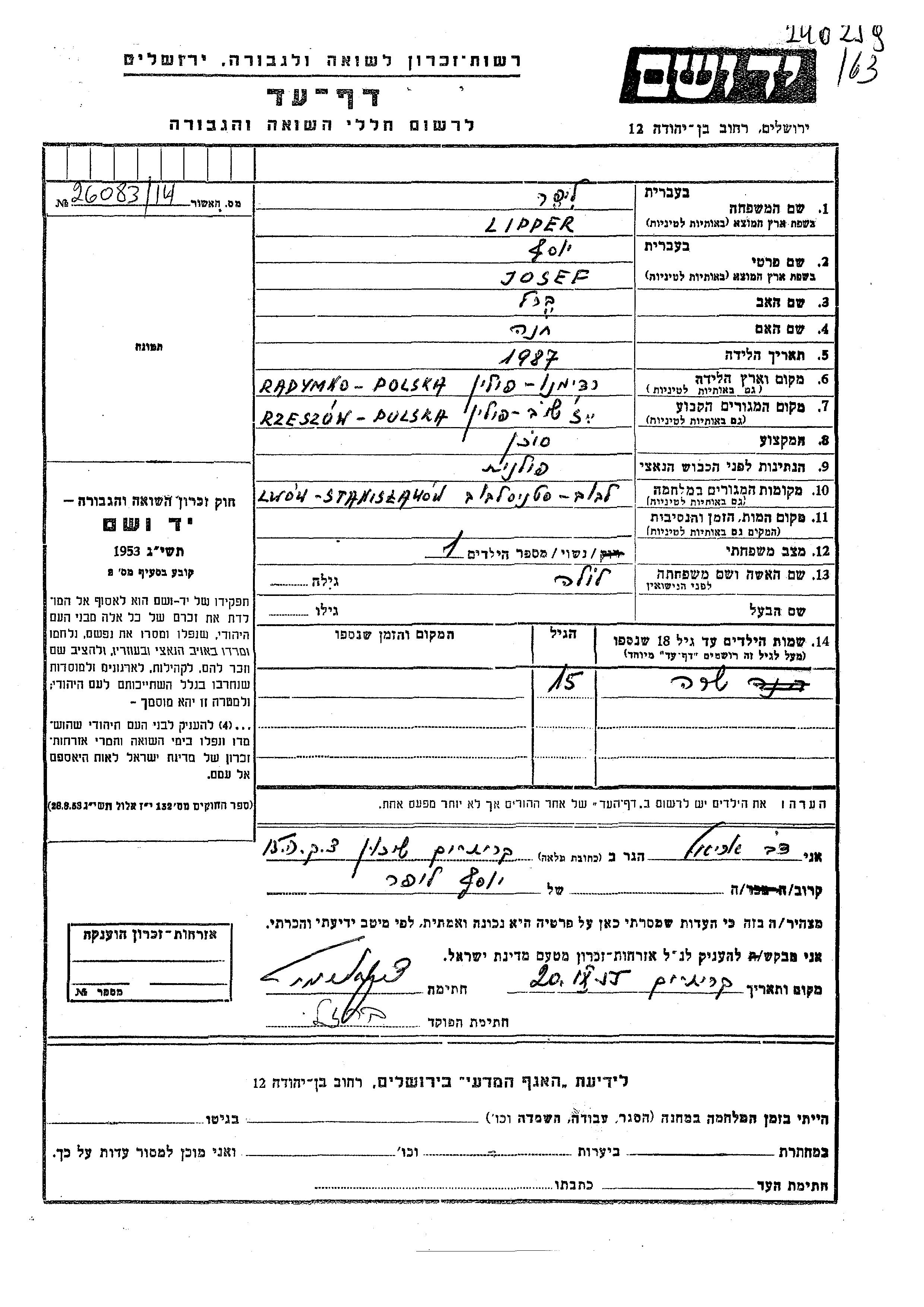 Aufenthaltsort während des Krieges/Schoah