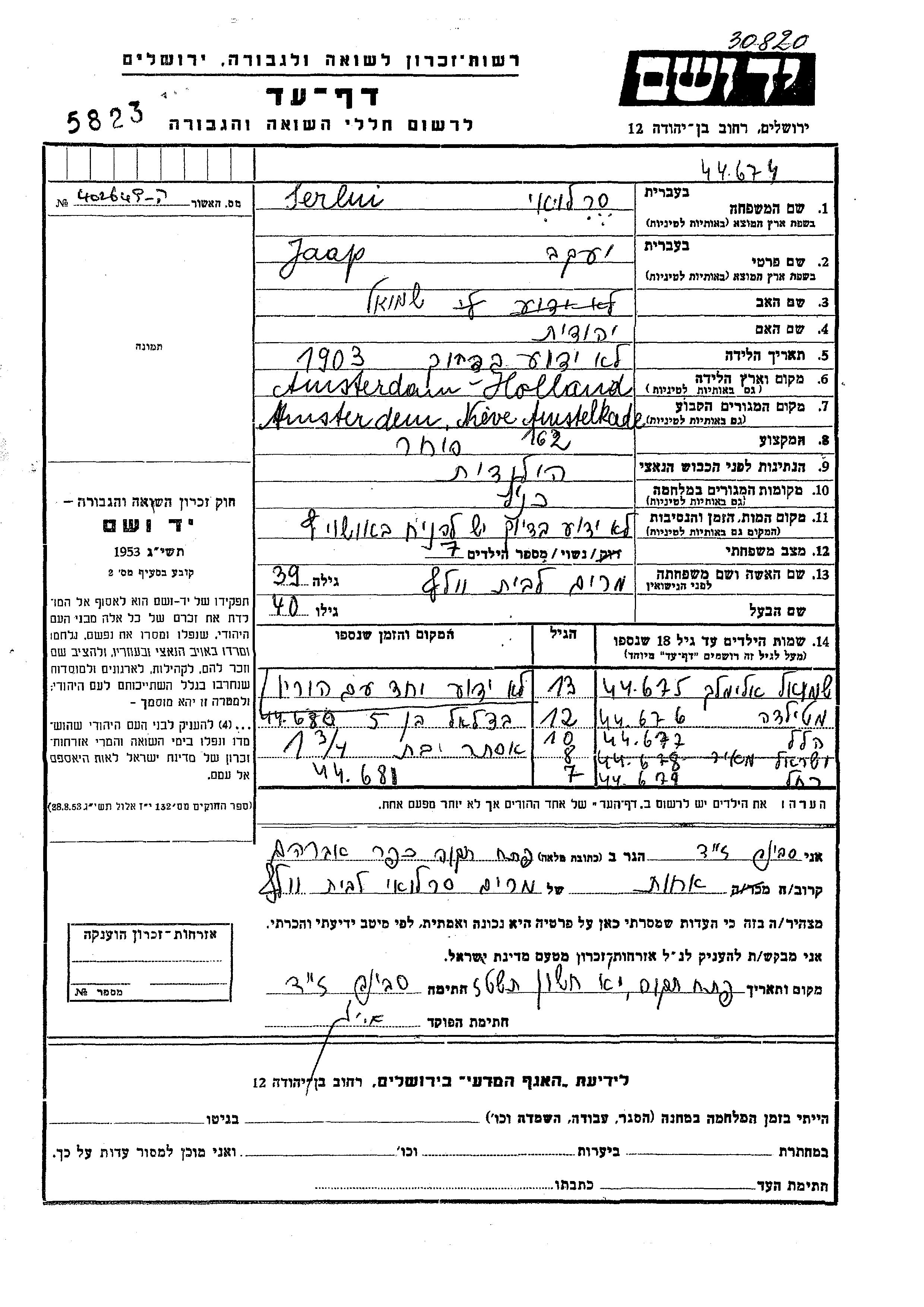 Serlui Rakhel Amsterdam, Niederlande Gedenkblatt