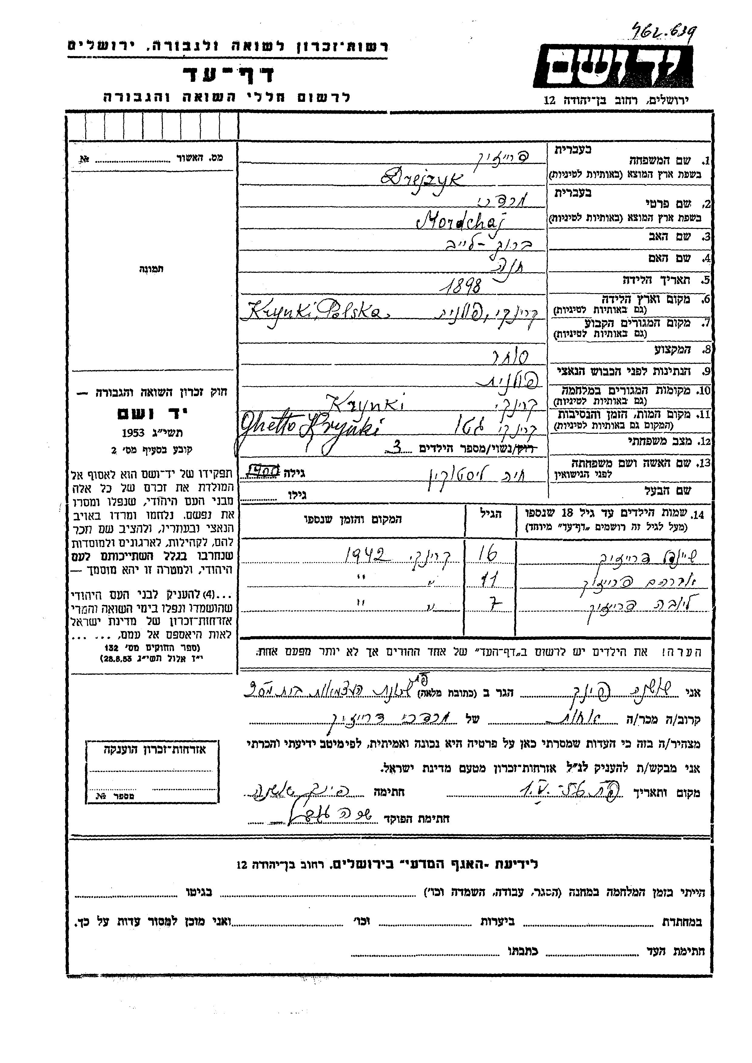 Avraham Drejzyk wurde Er war der Sohn von Mordchaj und Khaia, geb. Listokin. Er war Kind. Während des Krieges war er in Krynki, Polen.