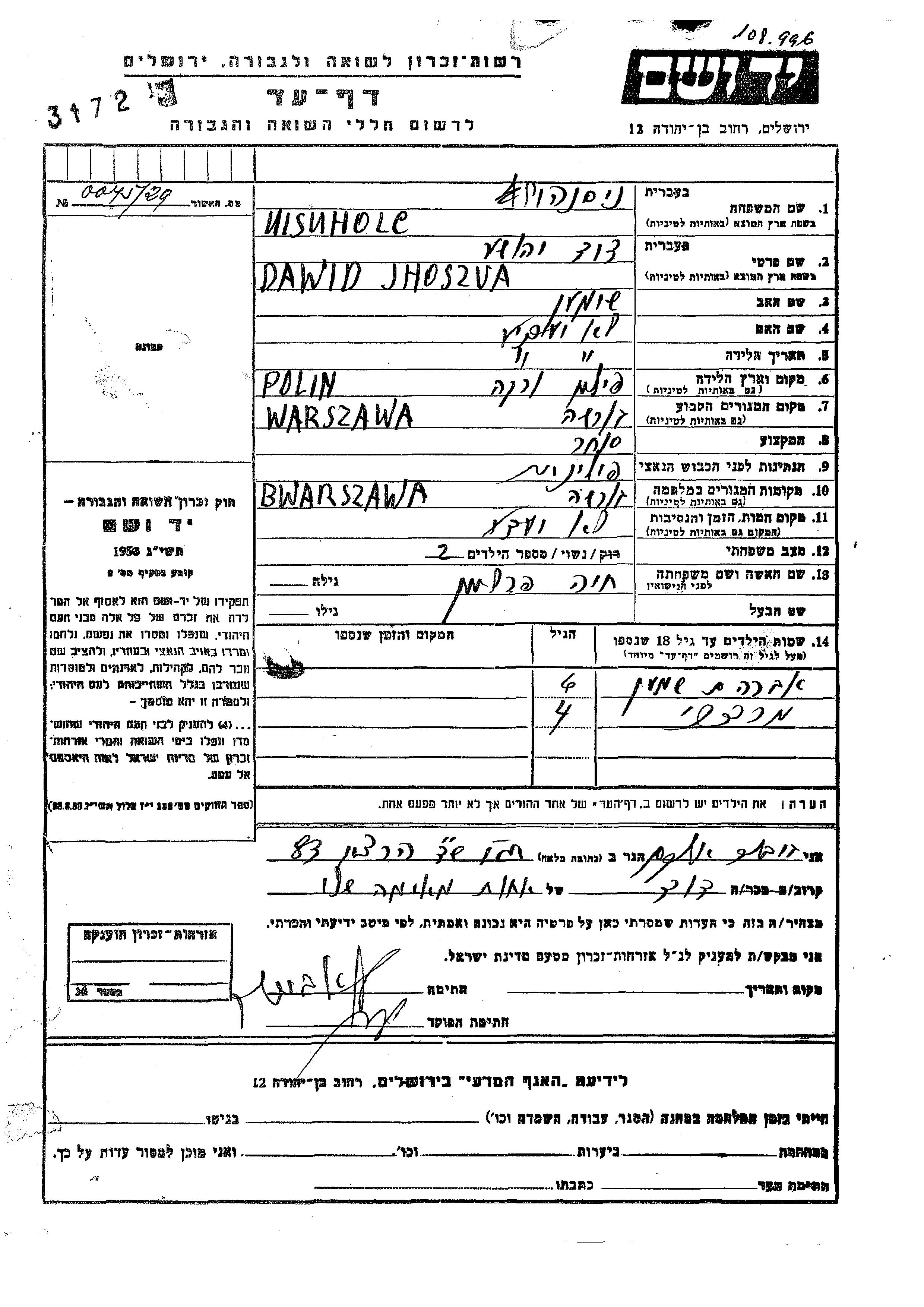 Avraham Shimon Nisnholc wurde Er war der Sohn von Dawid Jhoszua und Khaia, geb. Perlman. Er war Kind. Vor dem Zweiten Weltkrieg lebte er in Warszawa, Polen. Während des Krieges war er in Warszawa, Polen.