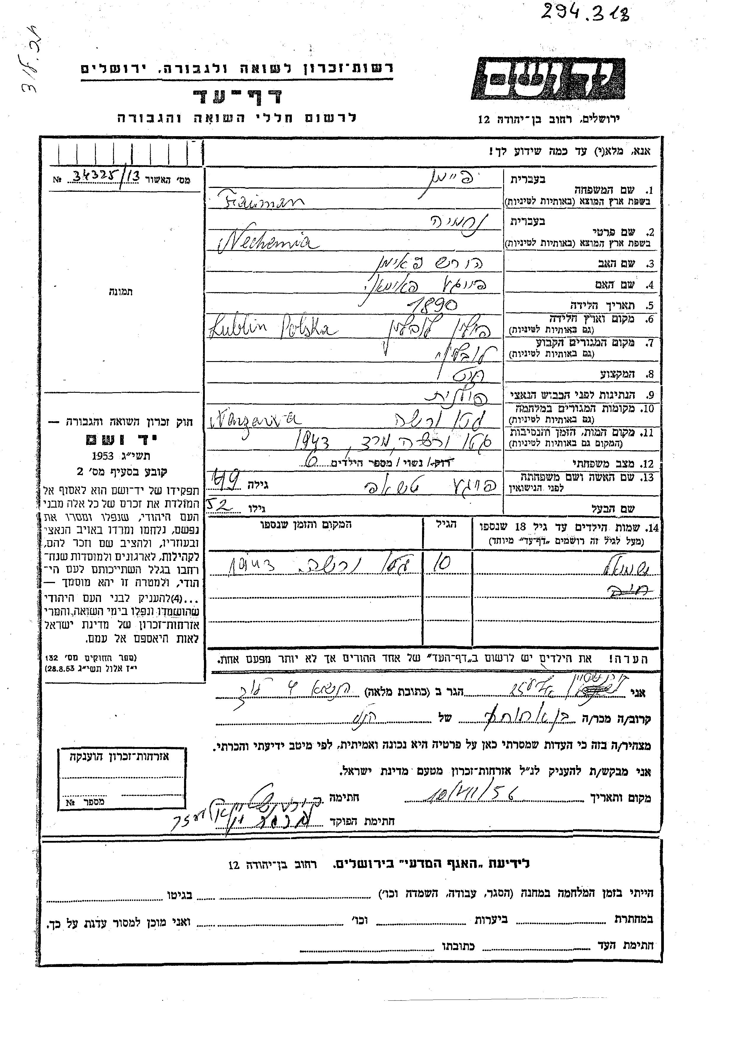 Faiman Khaia Lublin, Polen Gedenkblatt