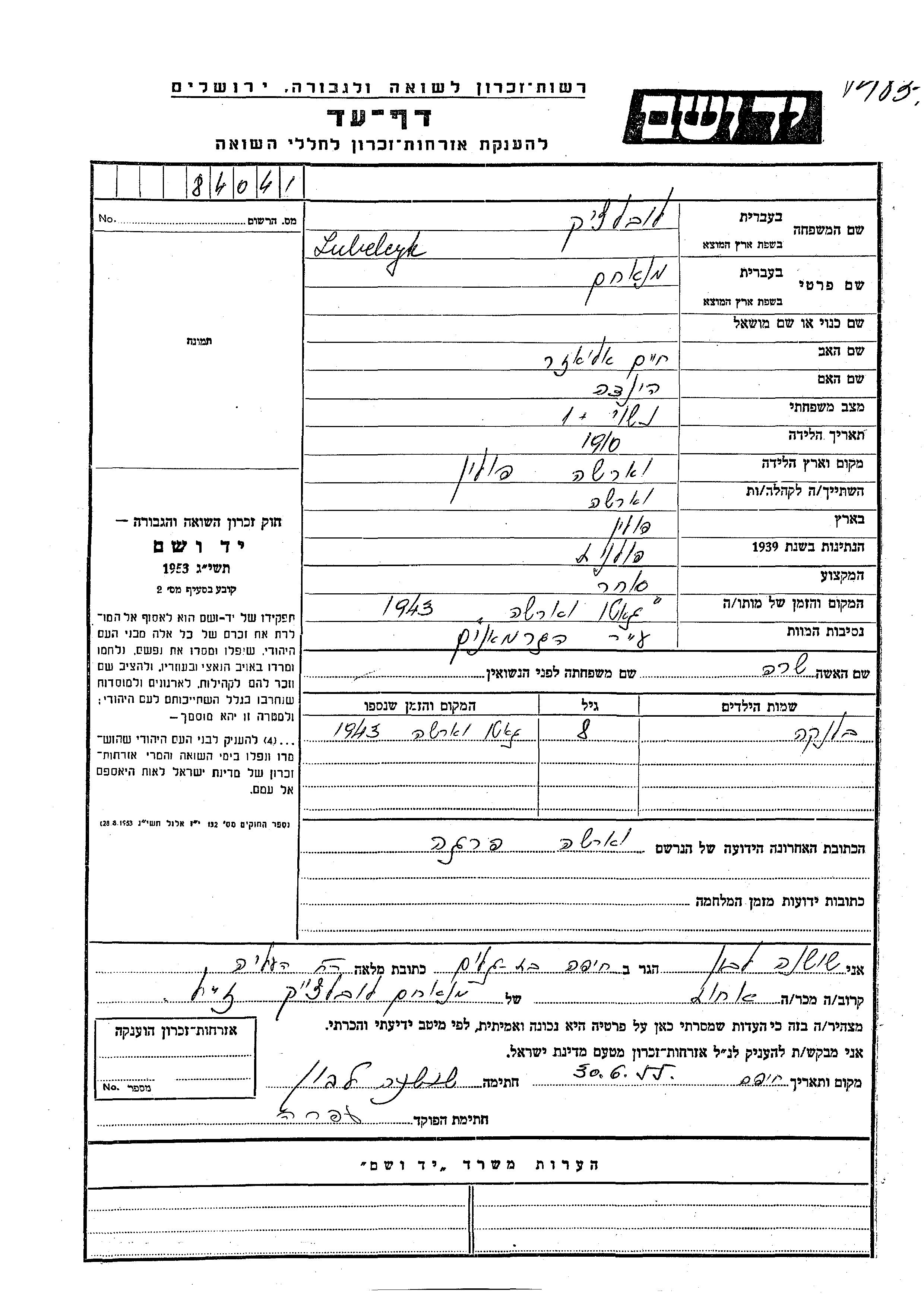 Lubelcyk Blanka unbekannter Ort, Gedenkblatt