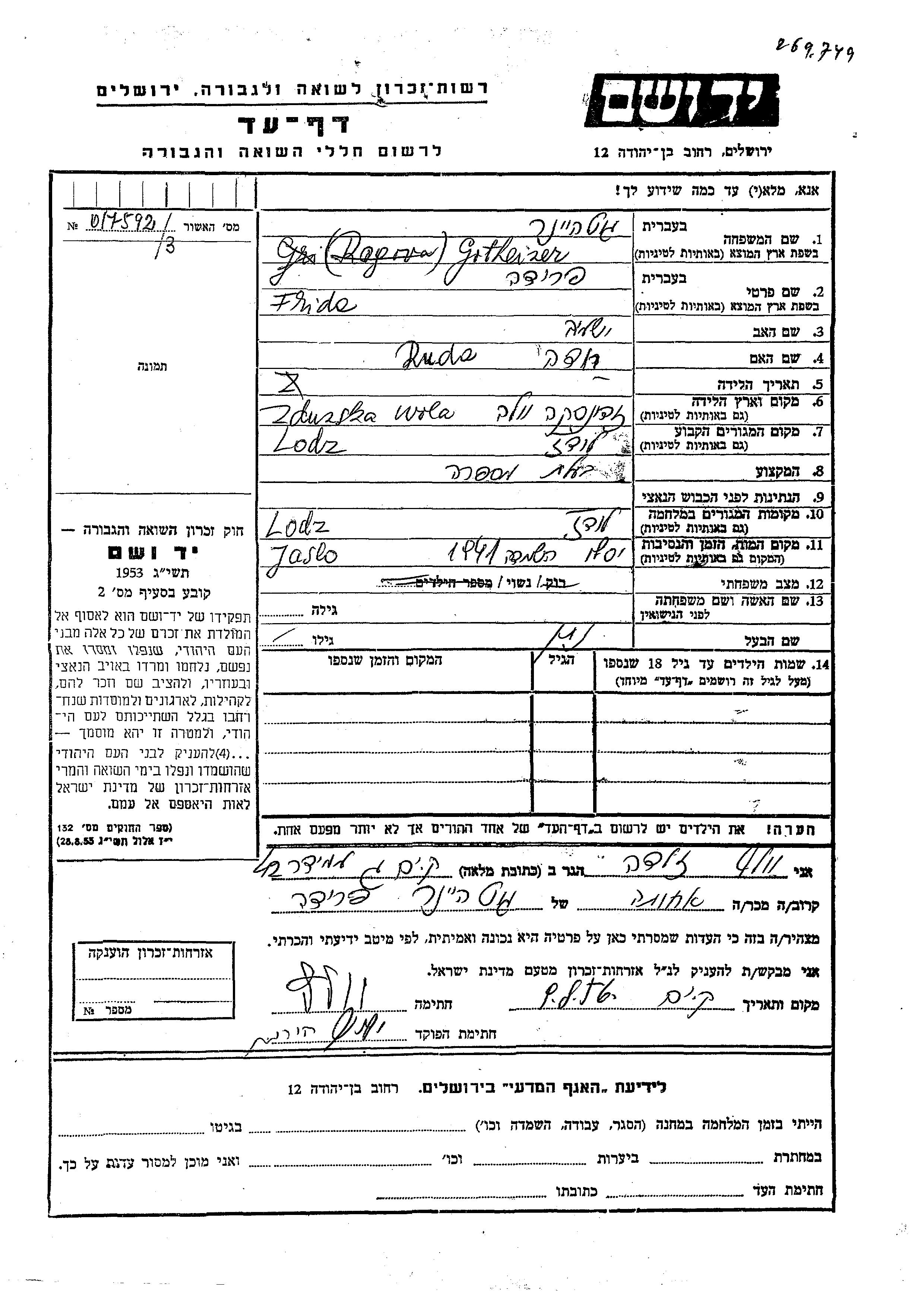 Frida wurde in der Schoah ermordet. Todesort: Jaslo, Polen im Jahr 1941.