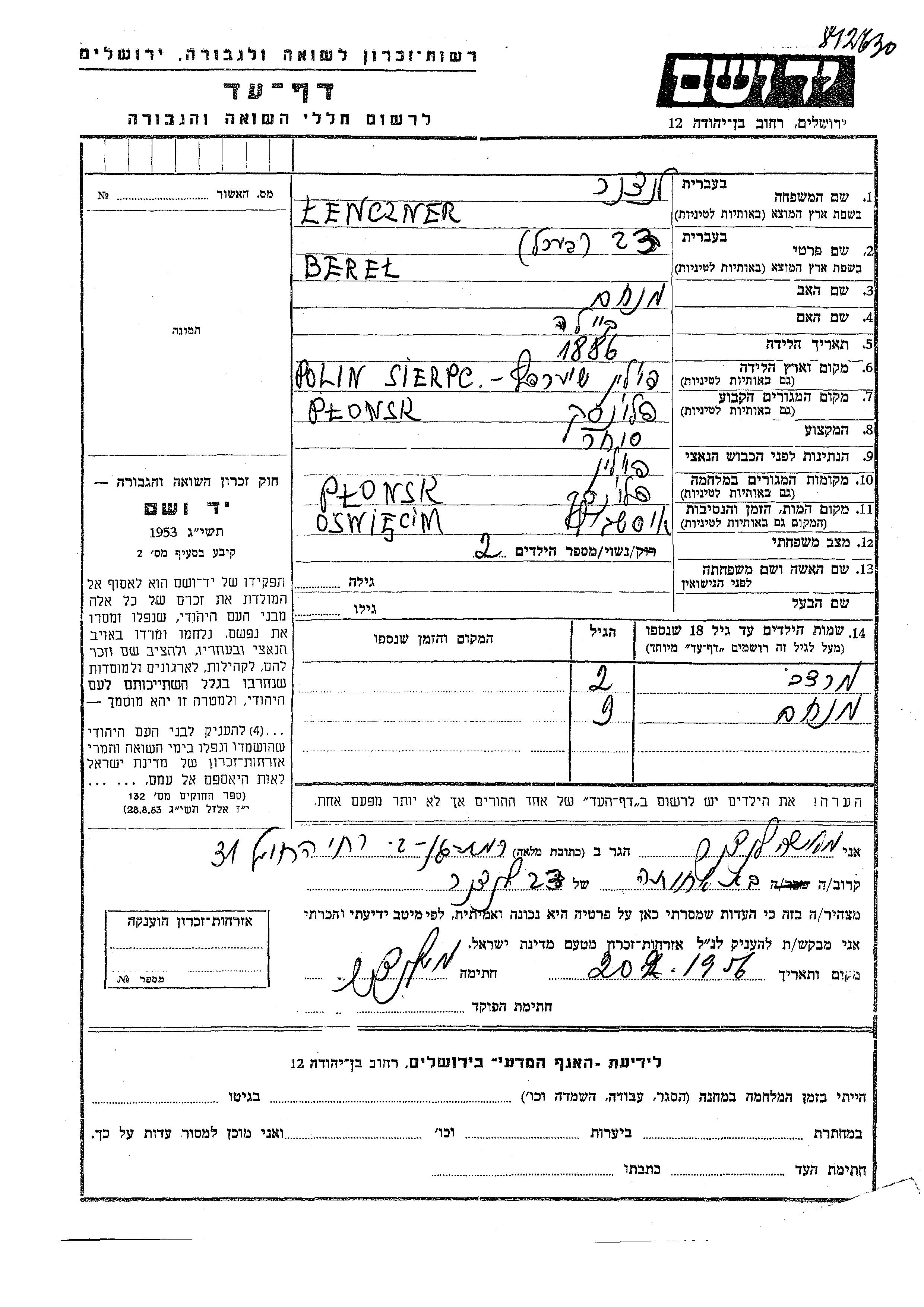 Mordekhai Lenczner wurde Er war der Sohn von Berl Dov. Er war Kind. Vor dem Zweiten Weltkrieg lebte er in Plonsk, Polen. Während des Krieges war er in Plonsk, Polen.