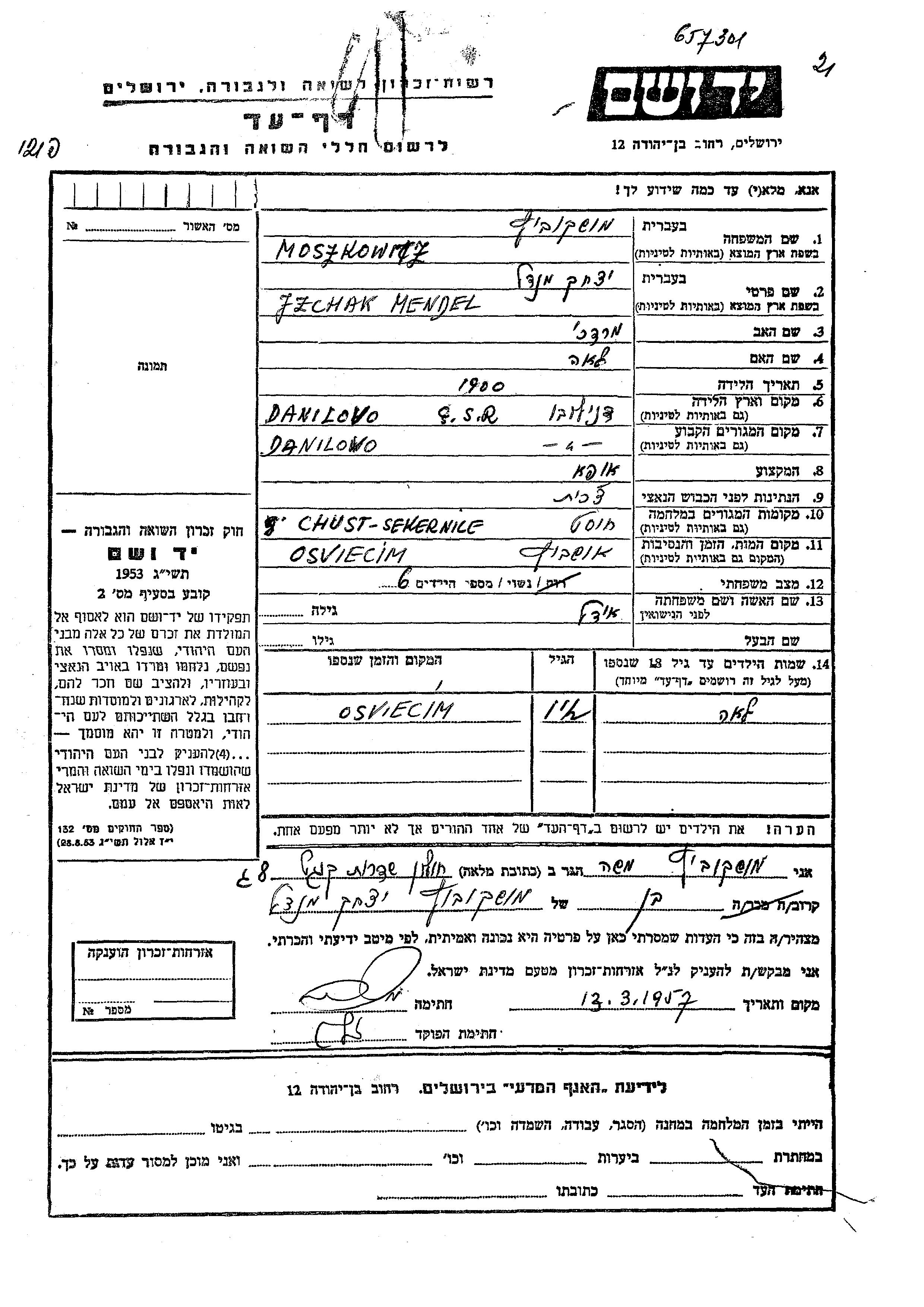 Moszkowitz Lea Danilovo, Tschechoslowakei Gedenkblatt