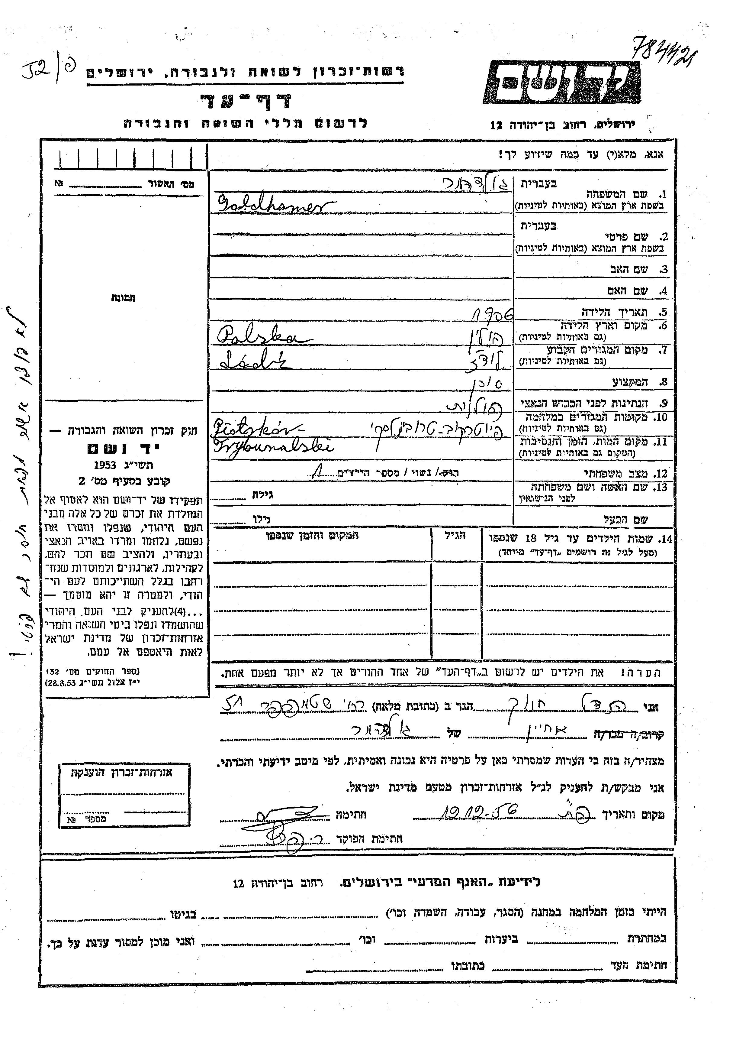 Vorname unbekannt Goldhamer wurde im Jahr 1906 in Polen geboren. Er/Sie war Vertreter/-in und Verheiratet Vor dem Zweiten Weltkrieg er/sie in Lodz, Polen. Während des Krieges war er/sie in Piotrkow Trybunalski, Polen.